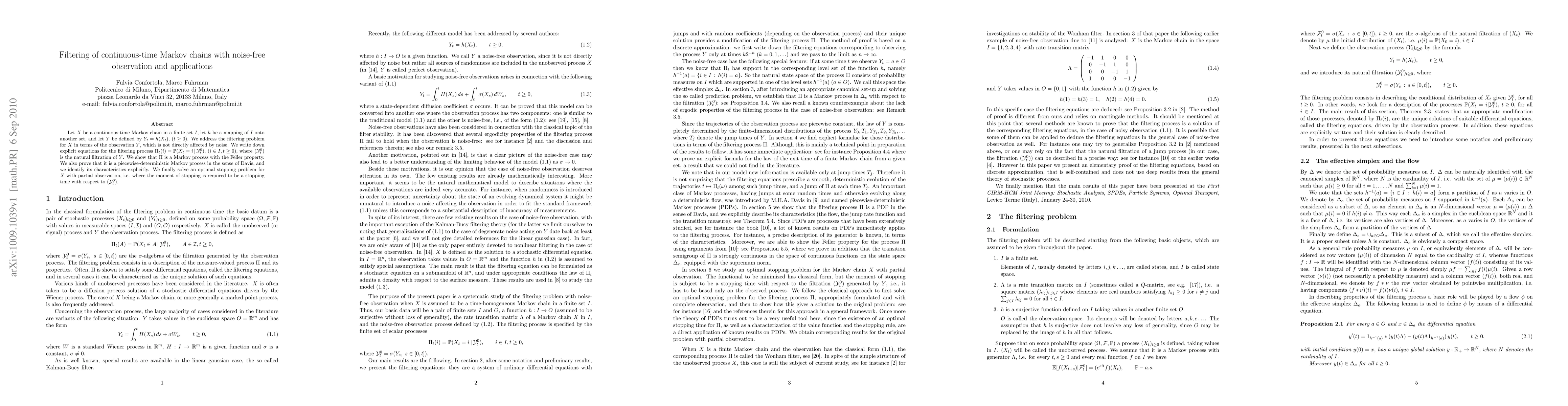 This paper investigates filtering of continuous-time Markov chains with noise-free observation, providing explicit equations for the filtering process and solving an optimal stopping problem with partial observation.