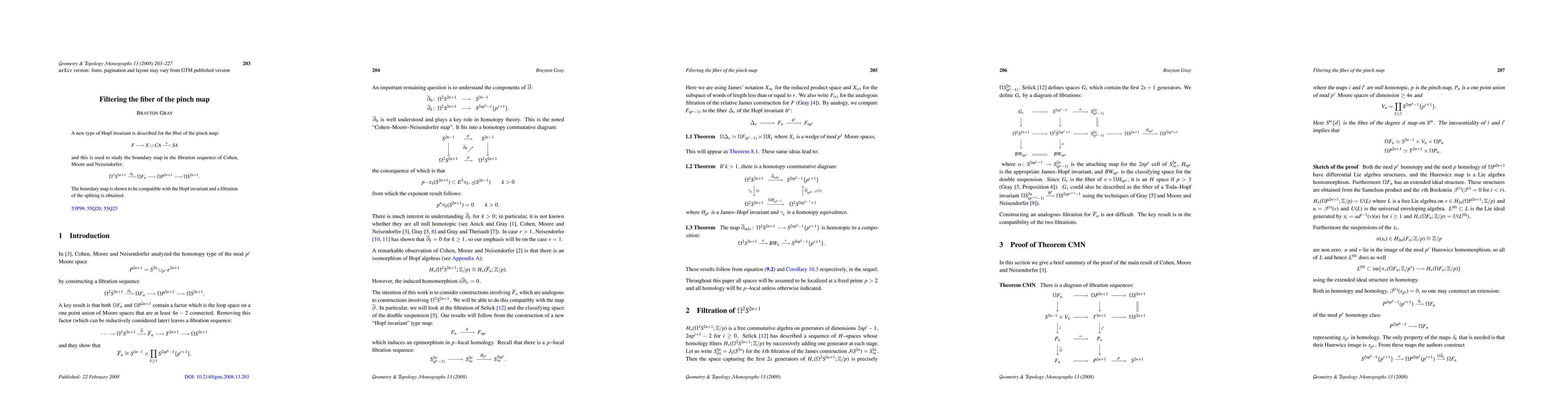 A new type of Hopf invariant is described for the fiber of the pinch map from the mapping cone of a map from A to X onto to the suspension of A; this is then used to study the boundary map in the fibration sequence of Cohen, Moore and Neisendorfer in the case that the mapping cone is an odd dimensional Moore space. The components of the boundary map are then shown to be compatible with Hopf invariants and a filtered splitting of the loops on the fiber is obtained.