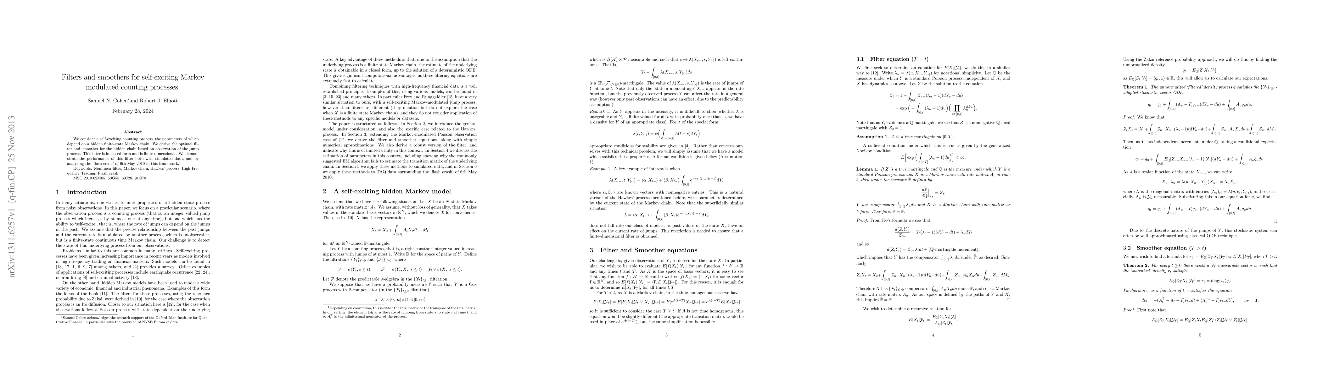 This paper develops optimal filters and smoothers for self-exciting counting processes modulated by a hidden Markov chain, providing a closed-form, finite-dimensional solution. The effectiveness is demonstrated through simulations and analysis of the 2010 'flash crash' event.