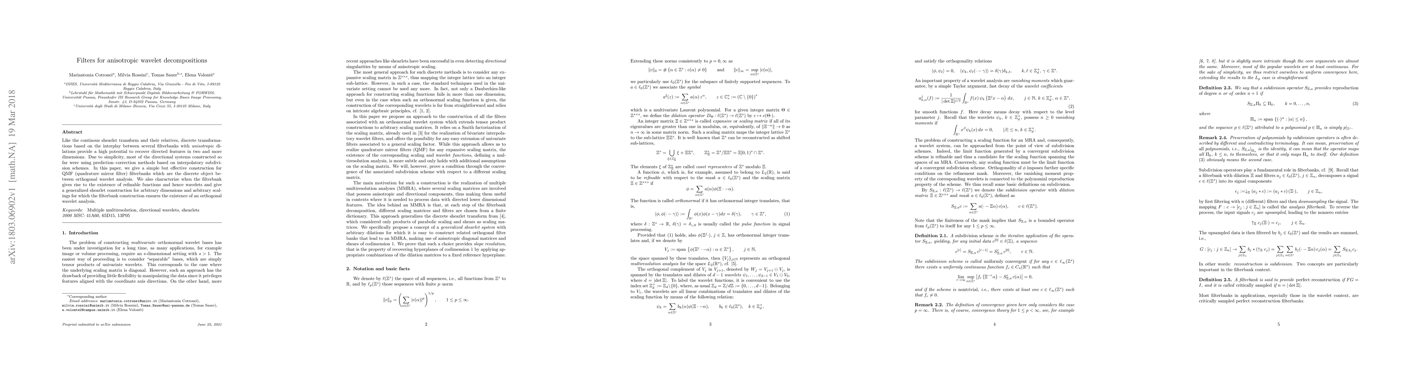 Researchers develop a simple method for creating QMF filterbanks that can produce wavelets with anisotropic wavelet decompositions, enabling the recovery of directed features in multiple dimensions.