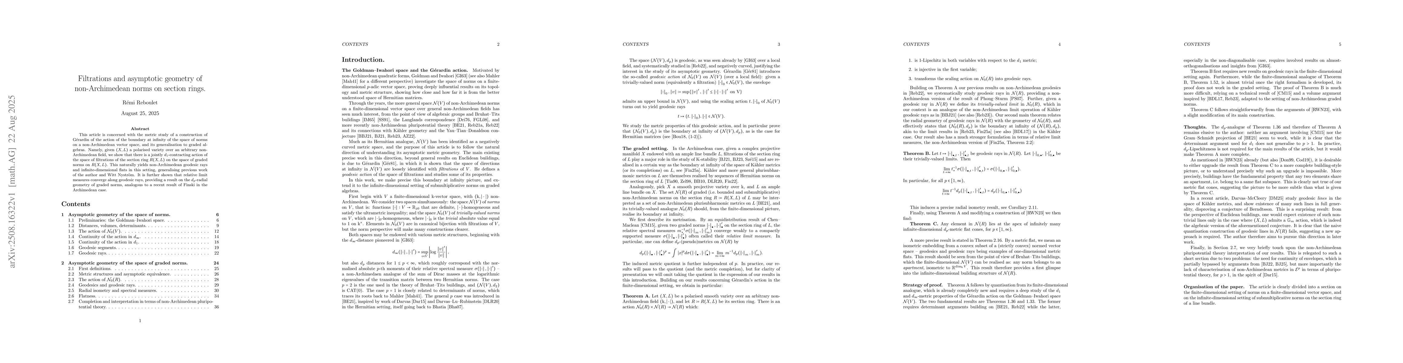 This article is concerned with the metric study of a construction of G\'erardin of the action of the boundary at infinity of the space of norms on a non-Archimedean vector space, and its generalisation to graded algebras. Namely, given (X,L) a polarised variety over an arbitrary non-Archimedean field, we show that there is a jointly d_1-contracting action of the space of filtrations of the section ring R(X,L) on the space of graded norms on R(X,L). This naturally yields non-Archimedean geodesic rays and infinite-dimensional flats in this setting, generalising previous work of the author and Witt Nystr\"om. It is further shown that relative limit measures converge along geodesic rays, providing a result on the d_p-radial geometry of graded norms, analogous to a recent result of Finski in the Archimedean case.