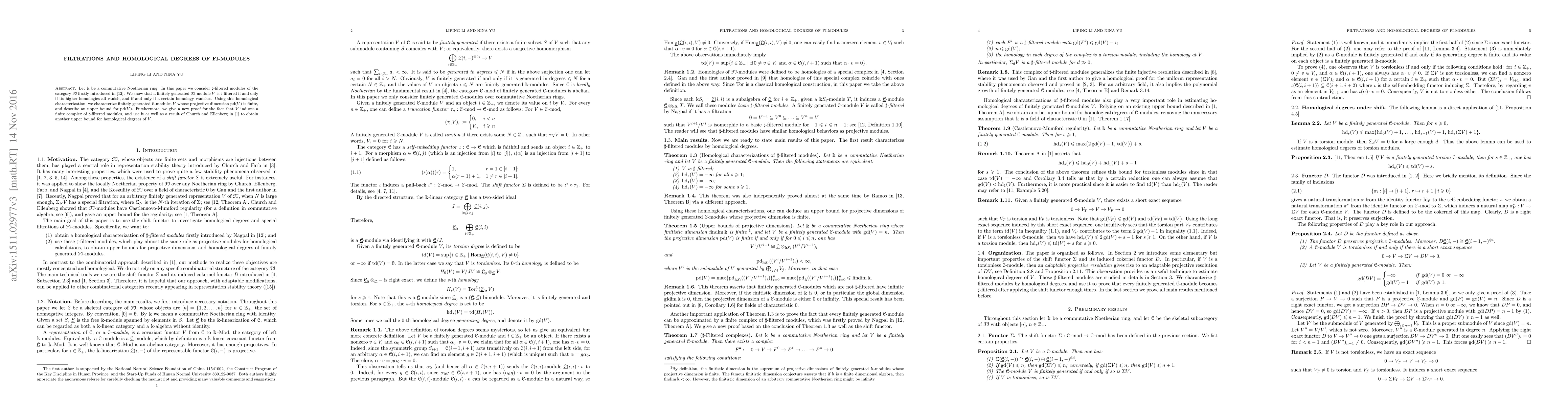 This paper studies filtered modules within the category FI, demonstrating that a finitely generated FI-module is filtered if its higher homologies vanish, leading to characterizations of modules with finite projective dimension and upper bounds for their homological degrees. A new proof is provided for the finite complex induction of filtered modules, further aiding in homological degree bounds.