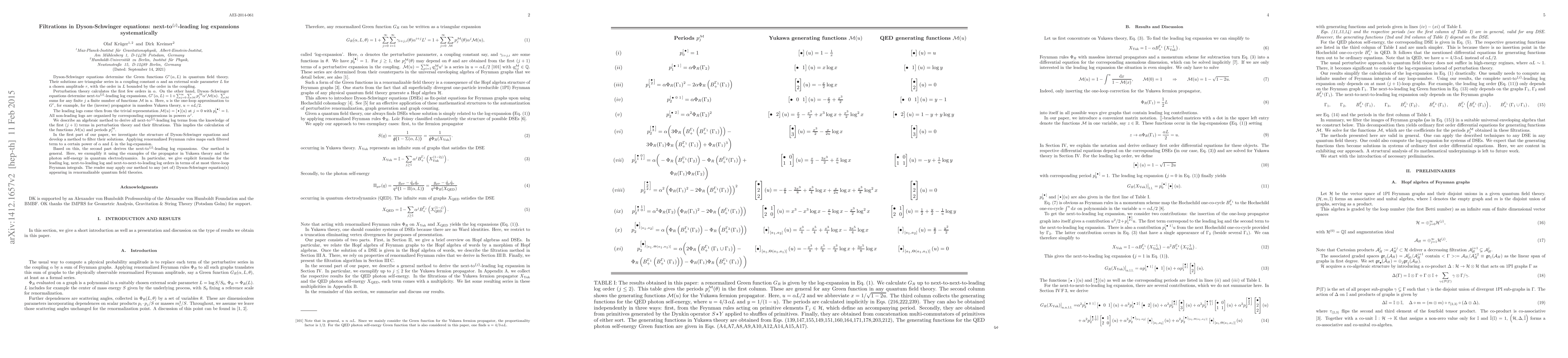 Dyson-Schwinger equations determine the Green functions $G^r(\alpha,L)$ in quantum field theory. Their solutions are triangular series in a coupling constant $\alpha$ and an external scale parameter $L$ for a chosen amplitude $r$, with the order in $L$ bounded by the order in the coupling. Perturbation theory calculates the first few orders in $\alpha$. On the other hand, Dyson--Schwinger equations determine next-to$^{\{\mathrm{j}\}}$-leading log expansions, $G^r(\alpha,L) = 1 + \sum_{j=0}^\infty \sum_{\mathcal{M}} p_j^{\mathcal{M}}\alpha^j \mathcal{M}(u)$. $\sum_{\mathcal{M}}$ sums a finite number of functions $\mathcal{M}$ in $u = \alpha L/2$. The leading logs come from the trivial representation $\mathcal{M}(u) = \begin{bsmallmatrix}\bullet\end{bsmallmatrix}(u)$ at $j=0$ with $p_0^{\begin{bsmallmatrix}\bullet\end{bsmallmatrix}} = 1$. All non-leading logs are organized by the suppression in powers $\alpha^j$. We describe an algebraic method to derive all next-to$^{\{\mathrm{j}\}}$-leading log terms from the knowledge of the first $(j+1)$ terms in perturbation theory and their filtrations. This implies the calculation of the functions $\mathcal{M}(u)$ and periods $p_j^\mathcal{M}$. In the first part of our paper, we investigate the structure of Dyson-Schwinger equations and develop a method to filter their solutions. Applying renormalized Feynman rules maps each filtered term to a certain power of $\alpha$ and $L$ in the log-expansion. Based on this, the second part derives the next-to$^{\{\mathrm{j}\}}$-leading log expansions. Our method is general. Here, we exemplify it using the examples of the propagator in Yukawa theory and the photon self-energy in quantum electrodynamics. The reader may apply our method to any (set of) Dyson-Schwinger equation(s) appearing in renormalizable quantum field theories.