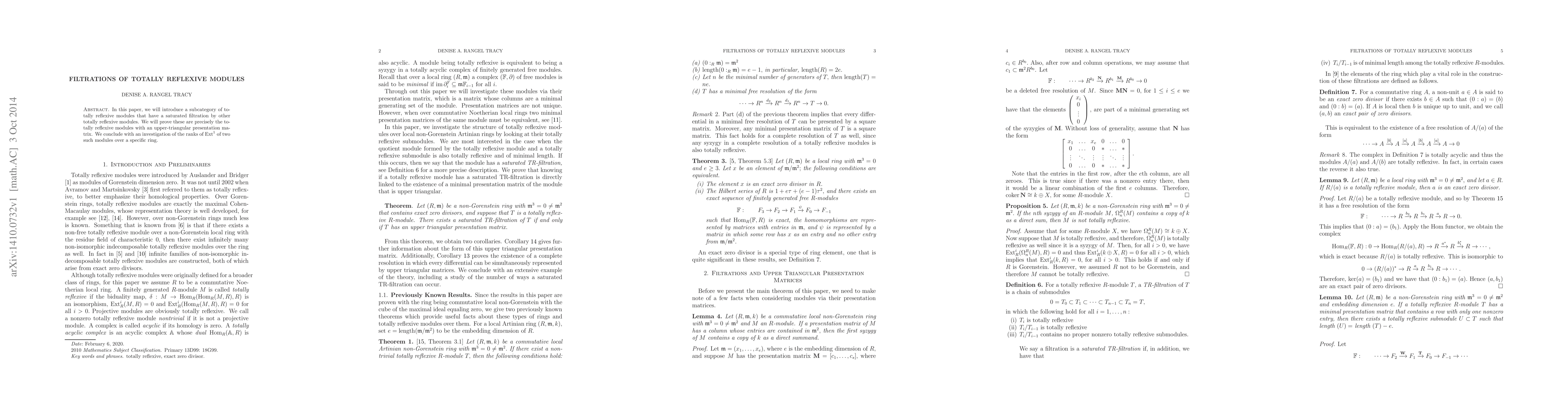 Summary: This paper explores a subcategory of totally reflexive modules characterized by saturated filtrations by other totally reflexive modules, identifying them as those with an upper-triangular presentation matrix. It concludes with an analysis of $\operatorname{Ext}^1$ ranks for these modules over a particular ring.