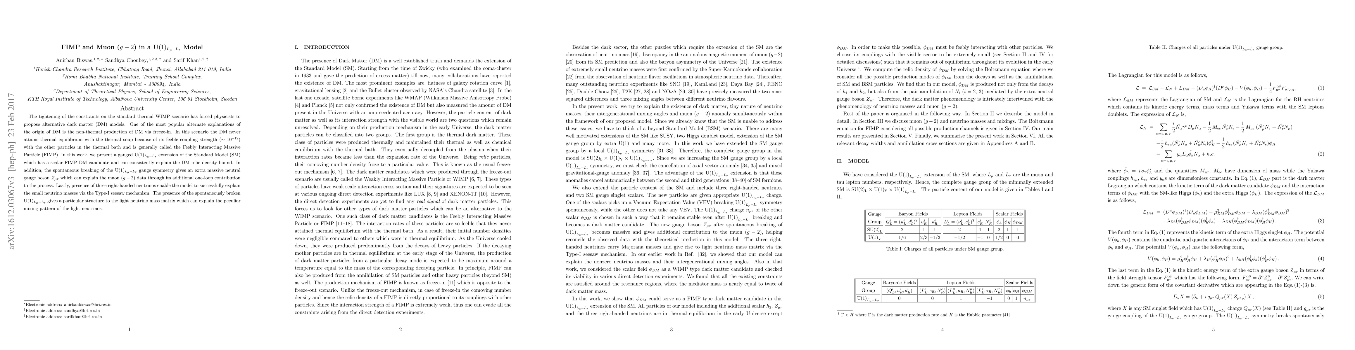 This paper proposes a U(1)$_{L_{\mu}-L_{\tau}}$ extended Standard Model featuring a Feebly Interacting Massive Particle (FIMP) as dark matter, explaining its relic density via non-thermal production. It also addresses the muon ($g-2$) anomaly through a massive neutral gauge boson $Z_{\mu\tau}$ and explains small neutrino masses via the Type-I seesaw mechanism.