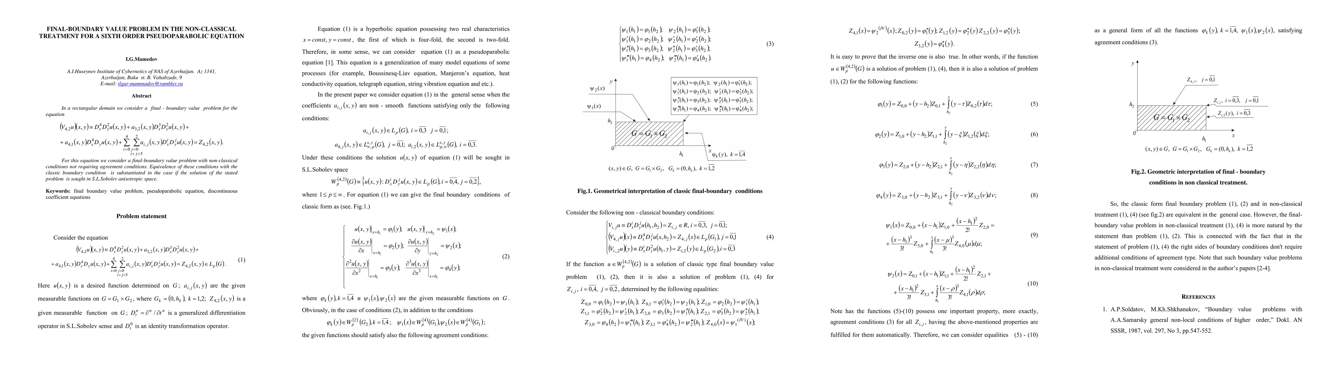 For this equation we consider a final-boundary value problem with non-classical conditions not requiring agreement conditions. Equivalence of these conditions with the classic boundary condition is substantiated in the case if the solution of the stated problem is sought in S.L.Sobolev anisotropic space.