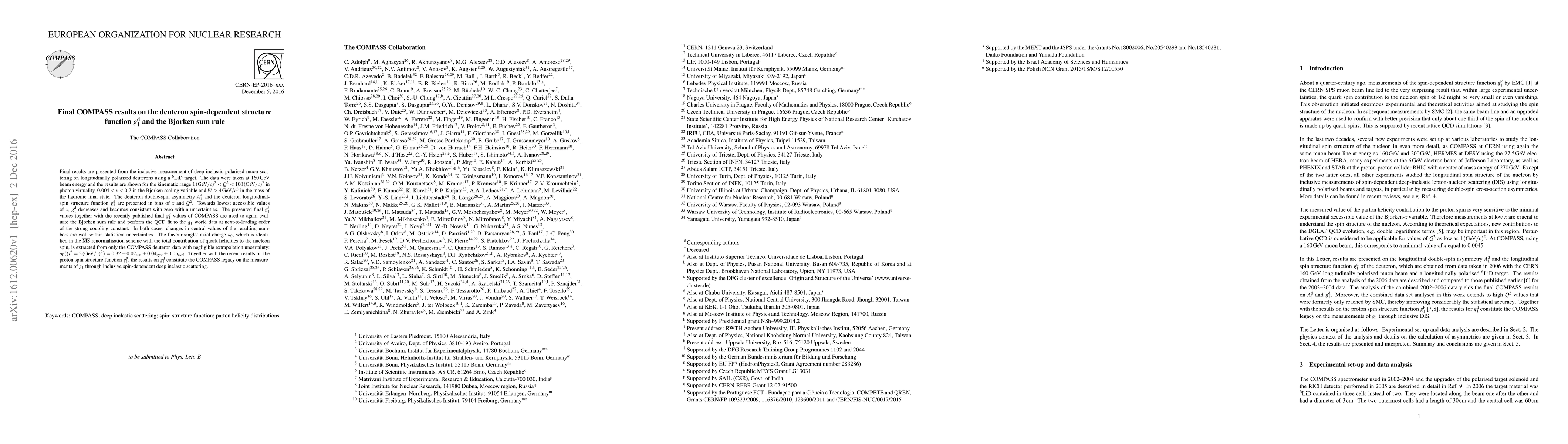 The COMPASS experiment provides final results on the deuteron spin-dependent structure function $g_1^{\rm d}$ and evaluates the Bjorken sum rule, showing that $g_1^{\rm d}$ approaches zero at low $x$. The extracted flavour-singlet axial charge $a_0$ from deuteron data is $0.32 \pm 0.02_{\rm stat} \pm 0.04_{\rm syst} \pm 0.05_{\rm evol}$, contributing to the understanding of nucleon spin structure.