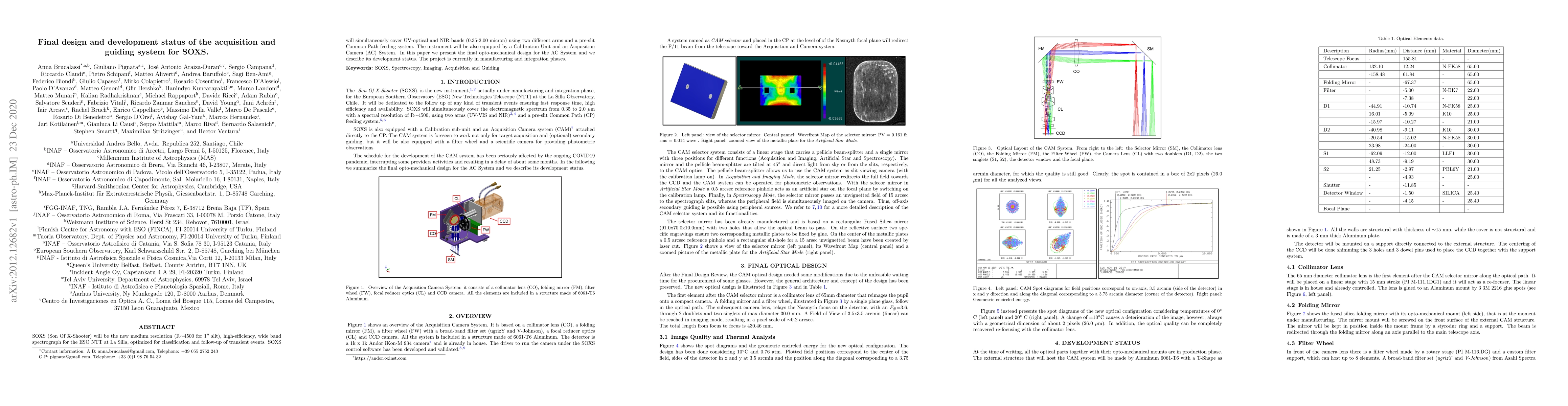 This paper details the final design and development of the Acquisition and Guiding System for SOXS, a new spectrograph for the ESO NTT optimized for transient events. The system is in the manufacturing and integration phases, featuring an opto-mechanical design for guiding and acquiring targets across UV, optical, and NIR bands.