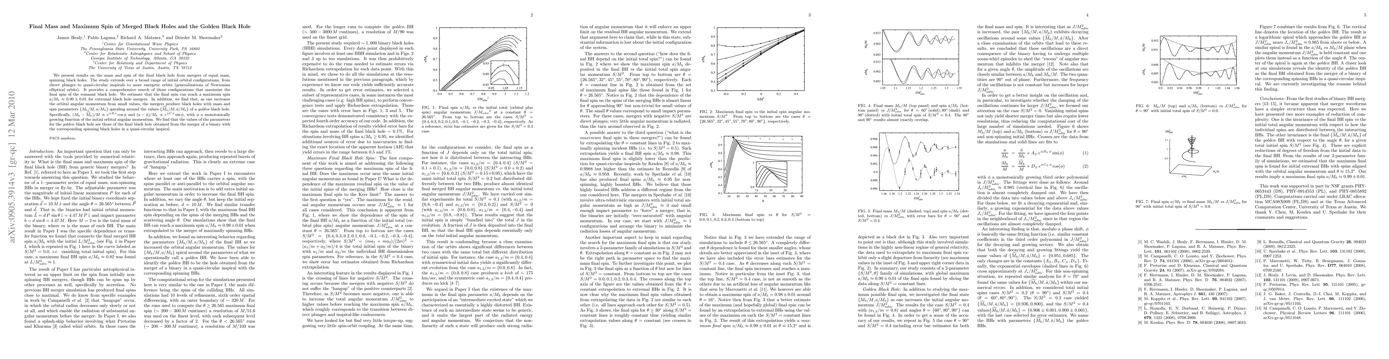 The paper presents detailed numerical relativity simulations and analysis of black hole mergers, providing a comprehensive study of final black hole mass and spin as functions of initial conditions and orbital configurations.