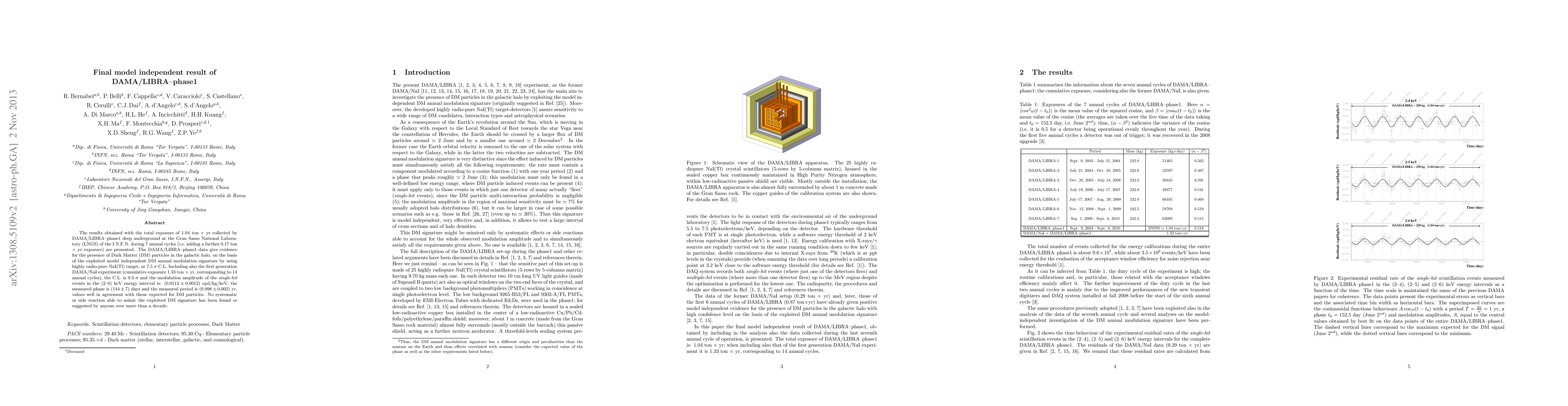 The DAMA/LIBRA-phase1 experiment found evidence for Dark Matter particles in the galactic halo at 7.5 sigma confidence level, with a modulation signature consistent with DM predictions.