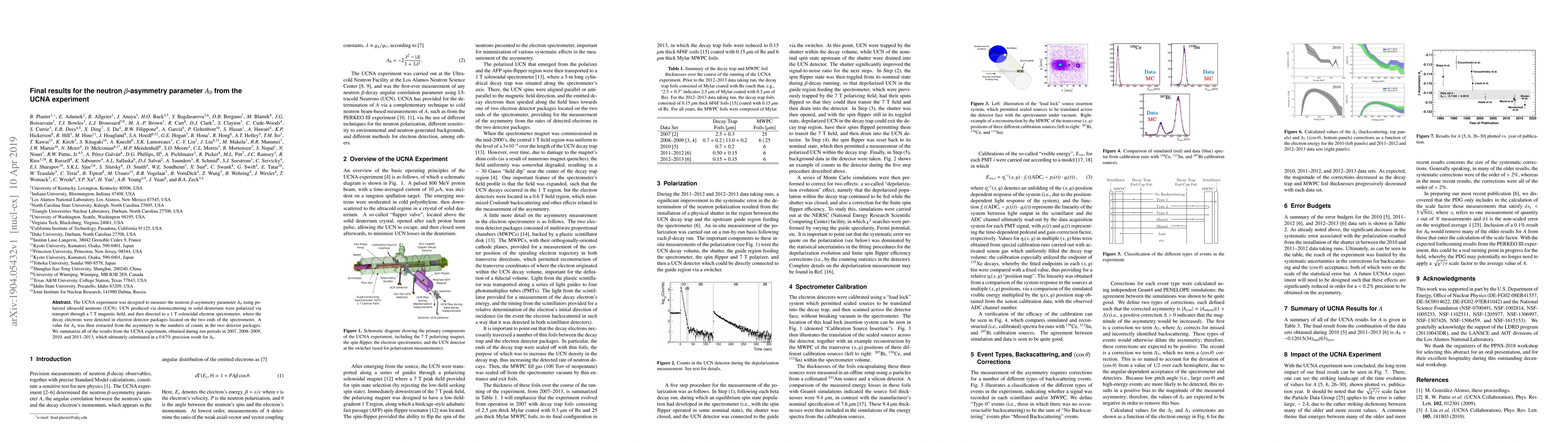 The UCNA experiment measured the neutron $\beta$-asymmetry parameter $A_0$ with polarized ultracold neutrons, achieving a 0.67% precision result through multiple run periods from 2007 to 2013. The experiment utilized a solenoidal electron spectrometer to detect decay electrons from the neutrons.