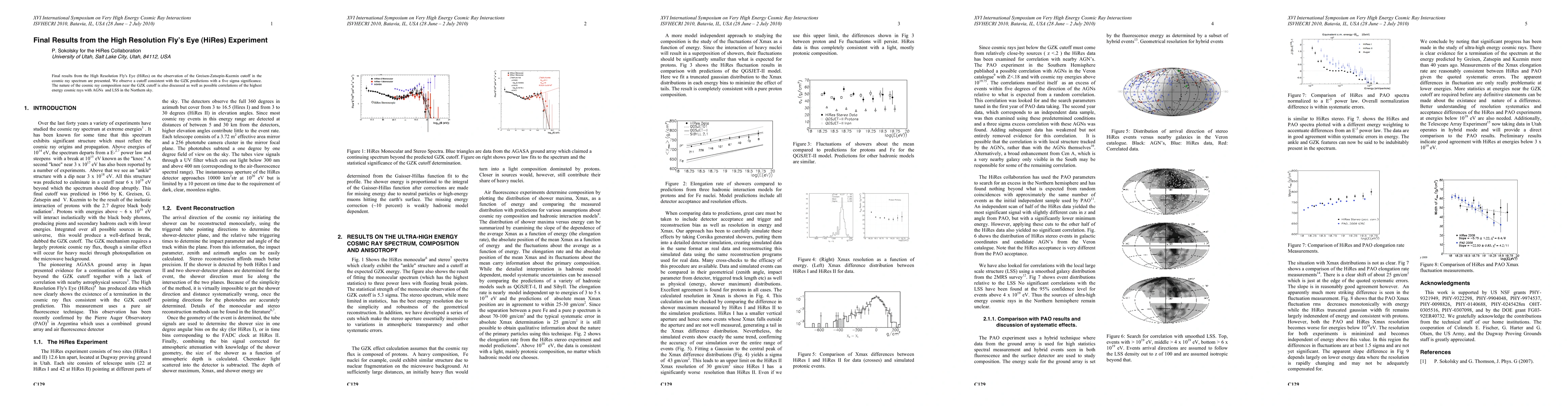 HiRes experiment developed advanced techniques for measuring cosmic ray spectra, composition, and anisotropy using air fluorescence and stereo reconstruction methods.