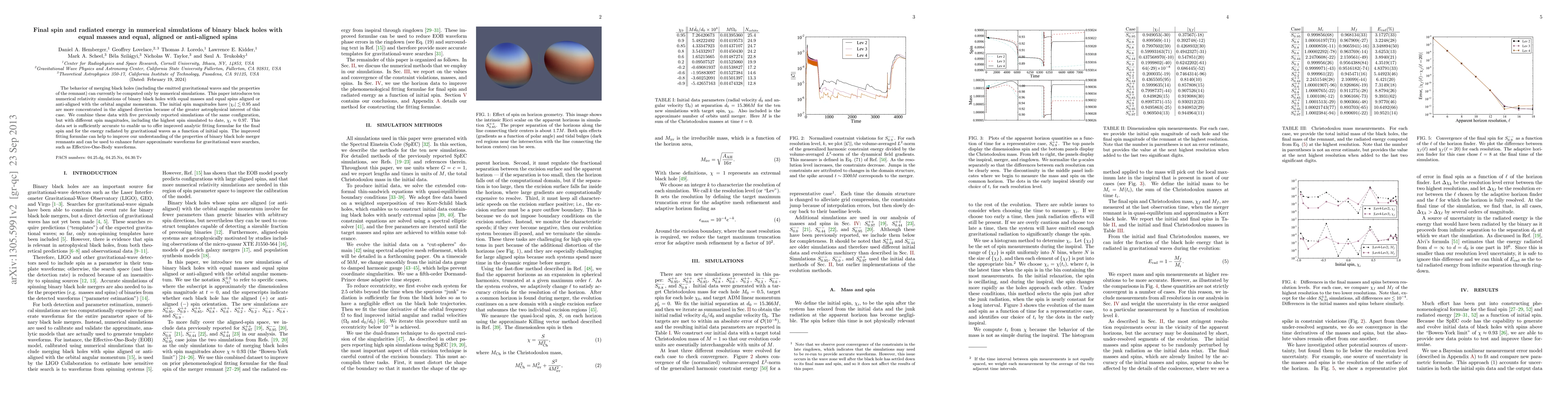 Numerical simulations of binary black holes with equal masses and spins aligned or anti-aligned were conducted to improve analytic fitting formulae for final spin and radiated energy, enhancing understanding of merger remnants and gravitational wave searches.