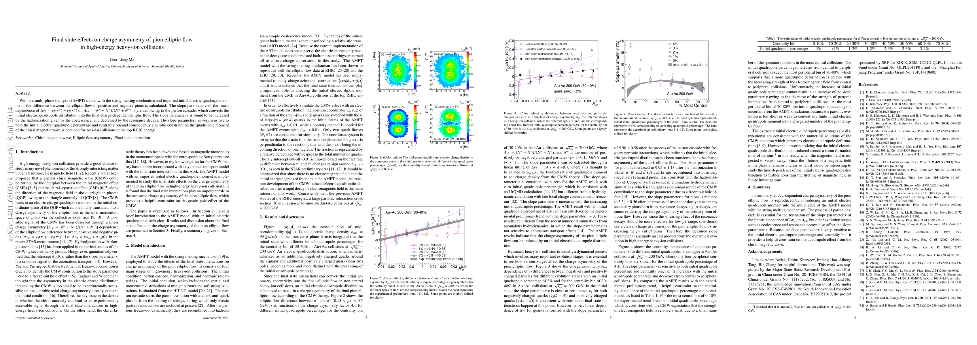The AMPT model with string melting mechanism was used to introduce an initial electric quadrupole moment.