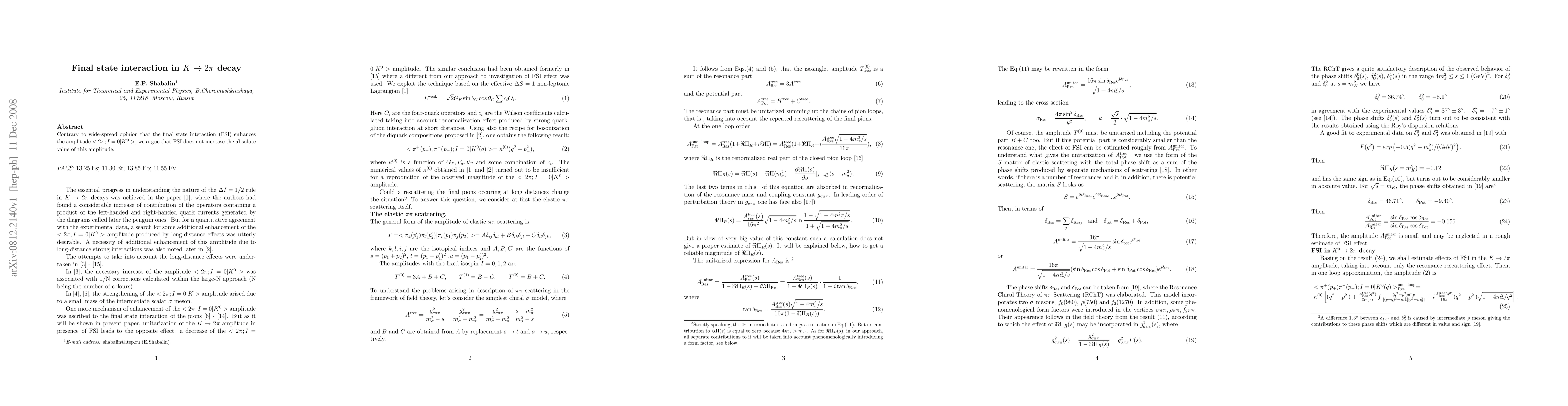Contrary to wide-spread opinion that the final state interaction (FSI) enhances the amplitude $<2\pi;I=0|K^0>$, we argue that FSI does not increase the absolute value of this amplitude.