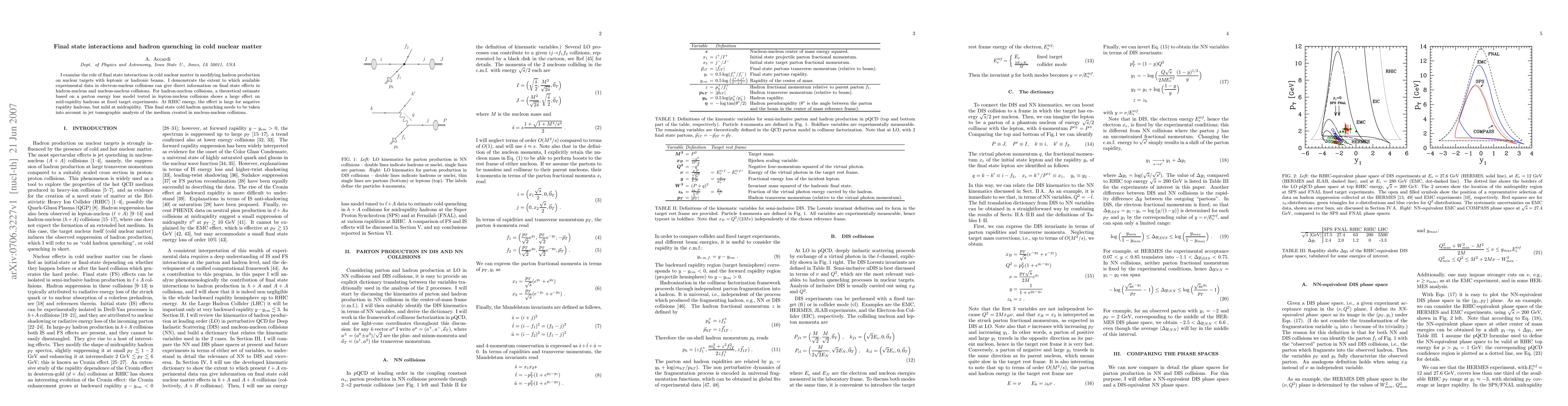 I examine the role of final state interactions in cold nuclear matter in modifying hadron production on nuclear targets with leptonic or hadronic beams. I demonstrate the extent to which available experimental data in electron-nucleus collisions can give direct information on final state effects in hadron-nucleus and nucleus-nucleus collisions. For hadron-nucleus collisions, a theoretical estimate based on a parton energy loss model tested in lepton-nucleus collisions shows a large effect on mid-rapidity hadrons at fixed target experiments. At RHIC energy, the effect is large for negative rapidity hadrons, but mild at midrapidity. This final state cold hadron quenching needs to be taken into account in jet tomographic analysis of the medium created in nucleus-nucleus collisions.