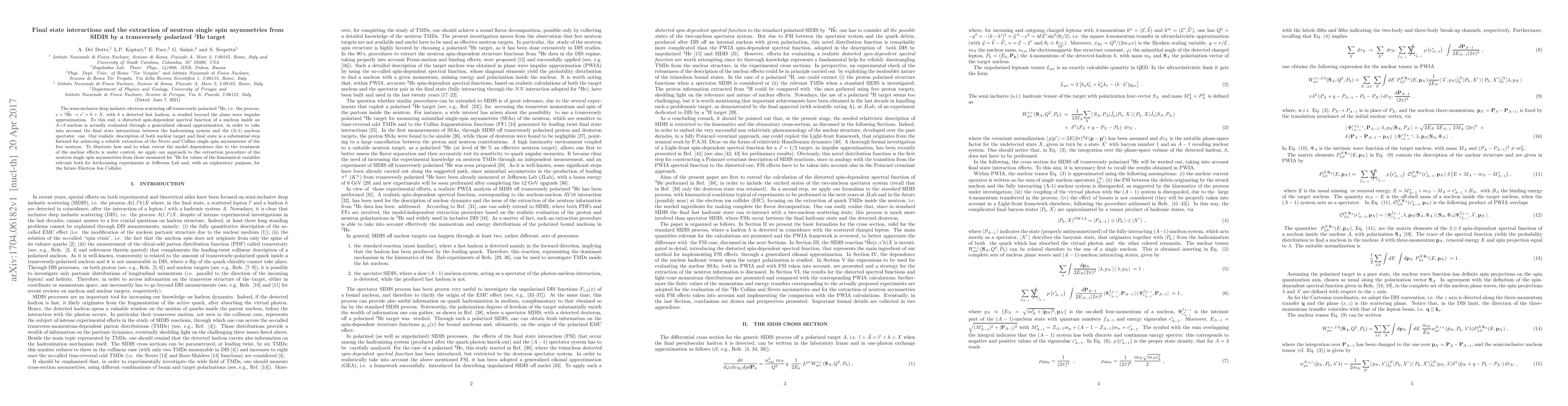 Researchers studied the scattering of electrons off a transversely polarized 3He target to extract neutron single spin asymmetries, using a new model that accounts for final state interactions and nuclear effects, which is a step forward for reliable Sivers and Collins measurements.