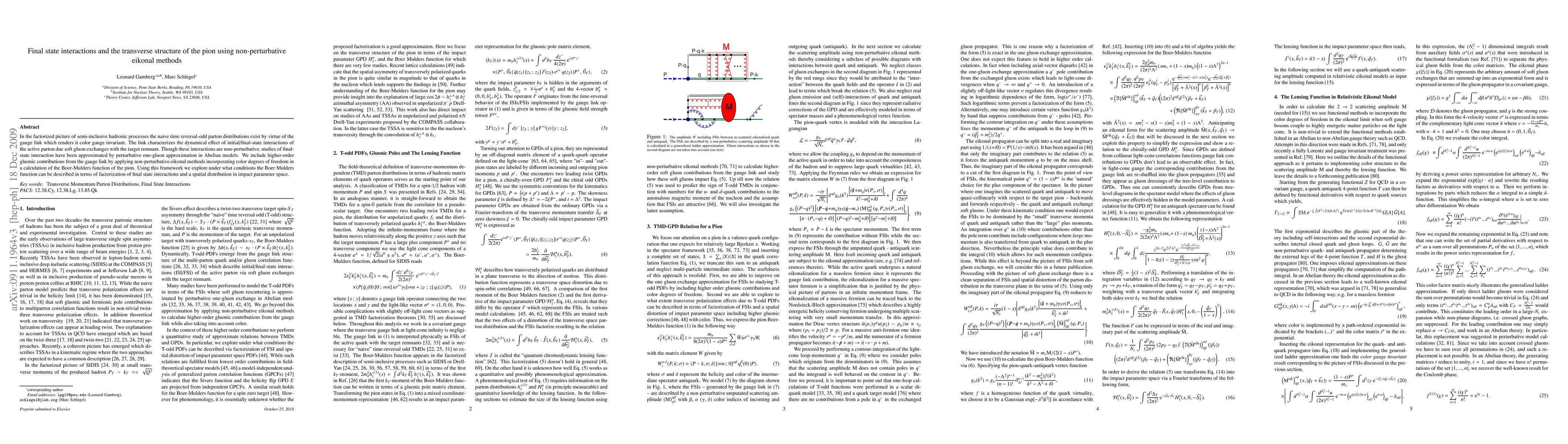 This paper investigates the Boer-Mulders function of the pion using non-perturbative eikonal methods to account for higher-order contributions in final state interactions beyond the perturbative one-gluon approximation. It explores the factorization of these interactions in terms of spatial distributions in impact parameter space.