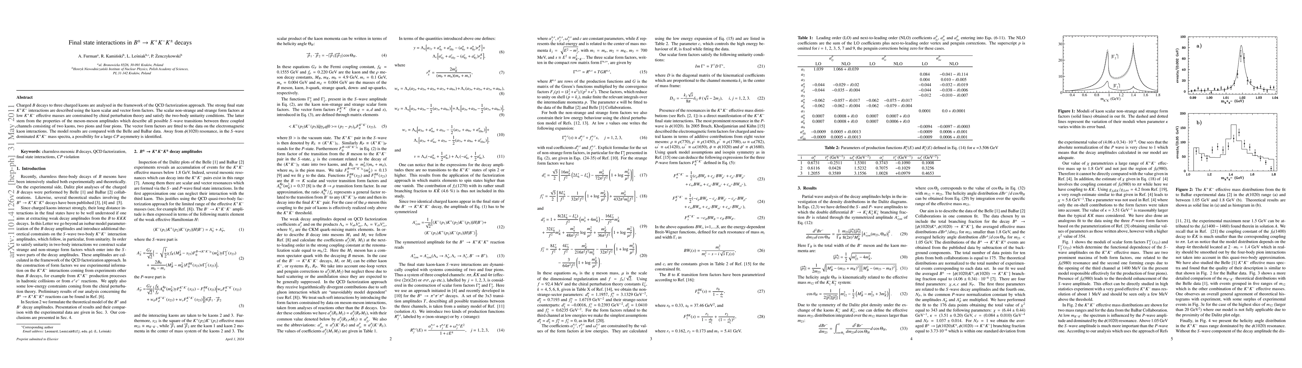 Charged B decays to three charged kaons are analysed in the framework of the QCD factorization approach. The strong final state K+K-interactions are described using the kaon scalar and vector form factors. The scalar non-strange and strange form factors at low K+K- effective masses are constrained by chiral perturbation theory and satisfy the two-body unitarity conditions. The latter stem from the properties of the meson-meson amplitudes which describe all possible S-wave transitions between three coupled channels consisting of two kaons, two pions and four pions. The vector form factors are fitted to the data on the electromagnetic kaon interactions. The model results are compared with the Belle and BaBar data. Away from phi(1020) resonance, in the S-wave dominated K+K- mass spectra, a possibility for a large CP asymmetry is identified.