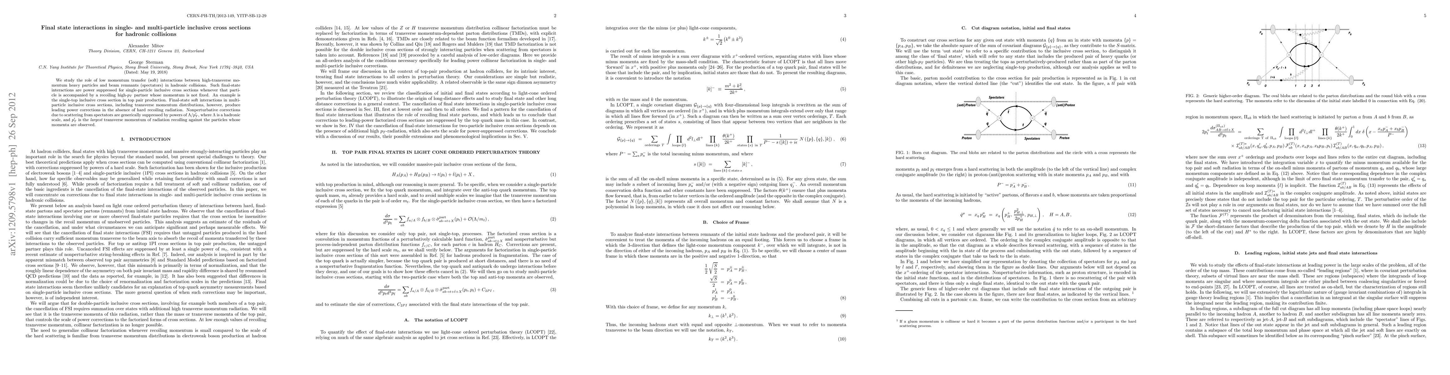 This paper investigates the impact of low momentum transfer interactions in final states during hadronic collisions, showing that such interactions are power suppressed in single-particle inclusive cross sections but lead to significant corrections in multi-particle inclusive cross sections, especially in transverse momentum distributions. Nonperturbative effects from spectator interactions are suppressed by factors of \Lambda/p'_T.