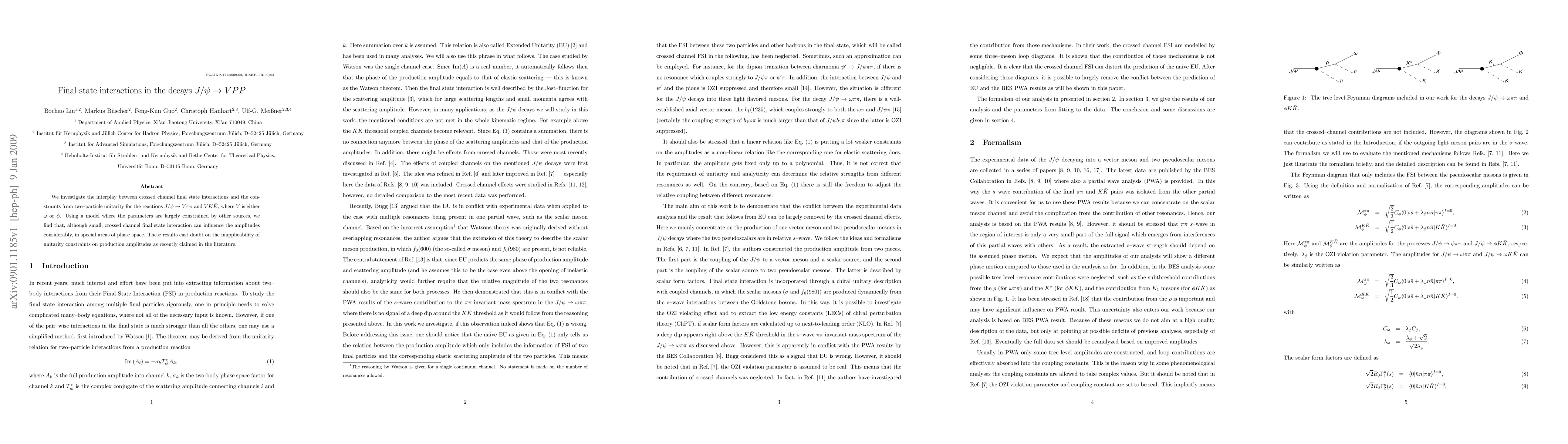 We investigate the interplay between crossed channel final state interactions and the constraints from two--particle unitarity for the reactions J/psi->V pi pi and VK\bar K, where V is either omega or phi. Using a model where the parameters are largely constrained by other sources, we find that, although small, crossed channel final state interaction can influence the amplitudes considerably, in special areas of phase space. These results cast doubt on the inapplicability of unitarity constraints on production amplitudes as recently claimed in the literature.