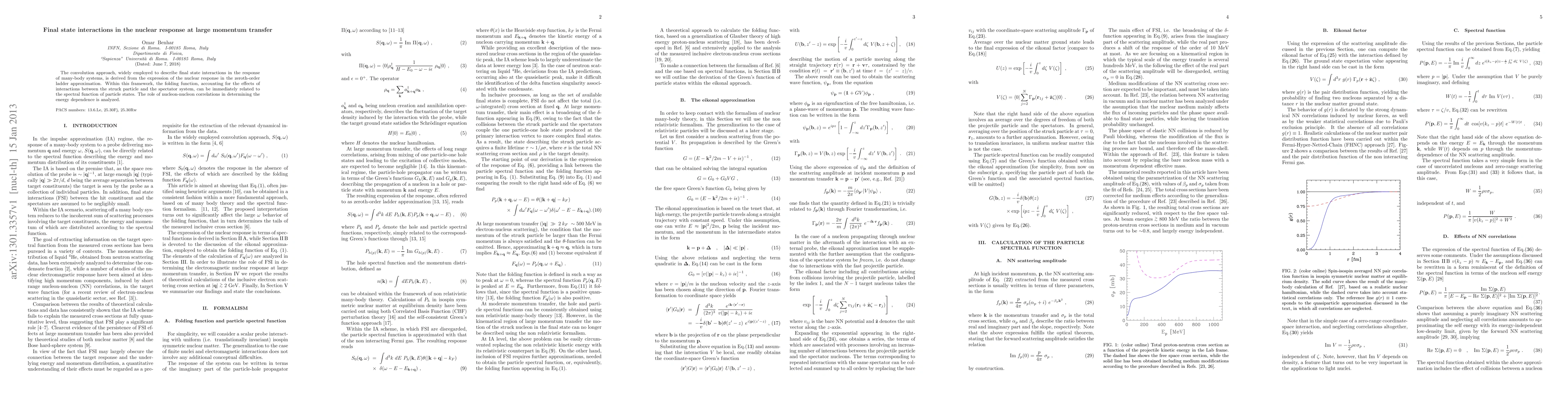 This paper derives the convolution approach to describe final state interactions in nuclear response, linking the folding function to the spectral function and analyzing the impact of nucleon-nucleon correlations on the energy dependence.