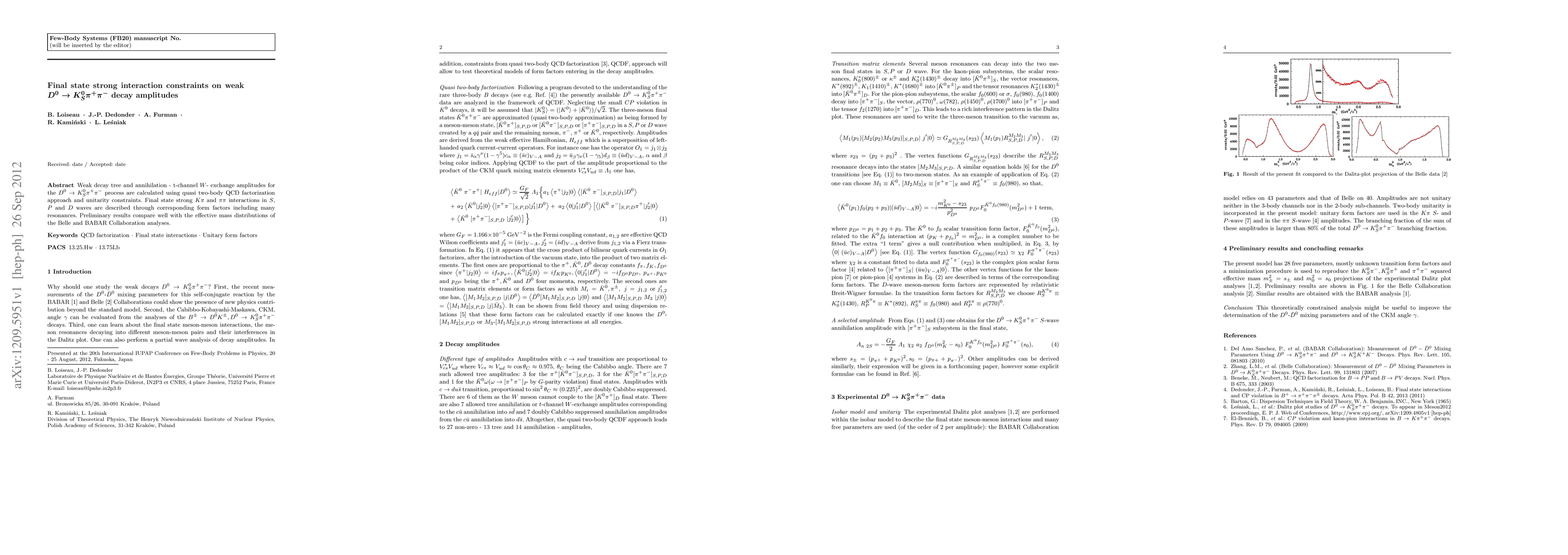Weak decay tree and annihilation - t-channel W - exchange amplitudes for the D0 -> K0S pi+ pi- process are calculated using quasi two-body QCD factorization approach and unitarity constraints. Final state strong kaon-pion and pion-pion interactions in S, P and D waves are described through corresponding form factors including many resonances. Preliminary results compare well with the effective mass distributions of the Belle and BABAR Collaboration analyses.