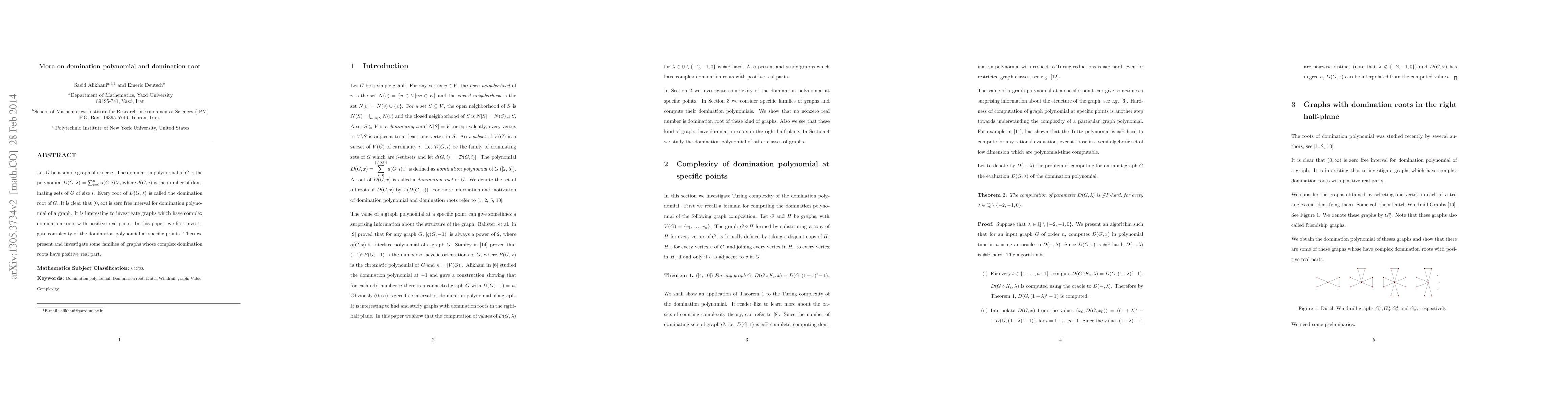 This paper explores the domination polynomial of graphs, which counts the number of dominating sets of a given size, and investigates graphs with domination roots (roots of the domination polynomial) in the right half-plane (positive real parts). It focuses on the complexity of these polynomials and presents families of graphs exhibiting such domination roots.