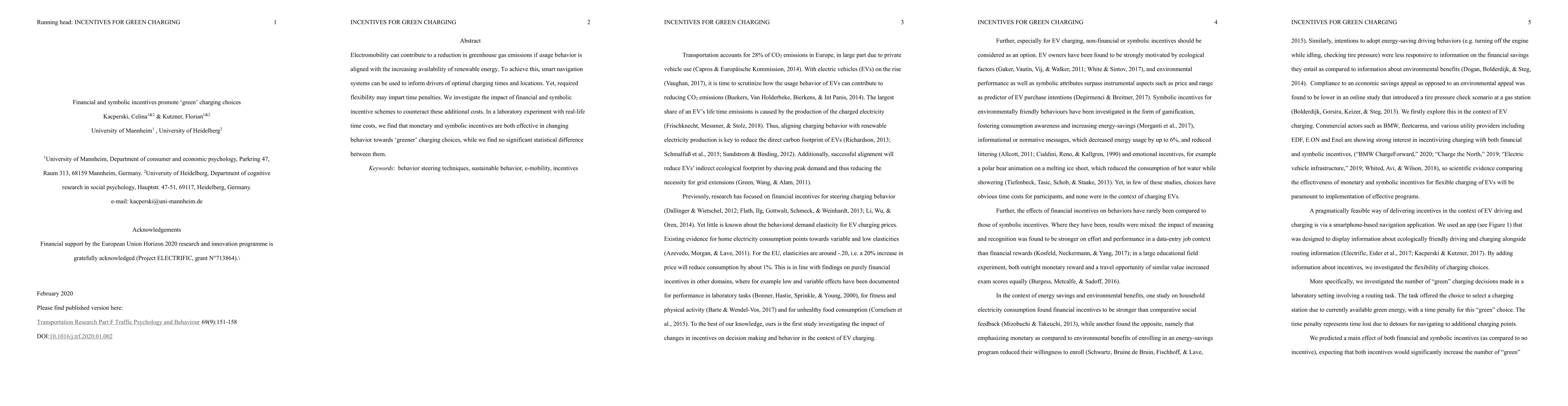 Electromobility can contribute to a reduction in greenhouse gas emissions if usage behavior is aligned with the increasing availability of renewable energy. To achieve this, smart navigation systems can be used to inform drivers of optimal charging times and locations. Yet, required flexibility may impart time penalties. We investigate the impact of financial and symbolic incentive schemes to counteract these additional costs. In a laboratory experiment with real-life time costs, we find that monetary and symbolic incentives are both effective in changing behavior towards 'greener' charging choices, while we find no significant statistical difference between them.
