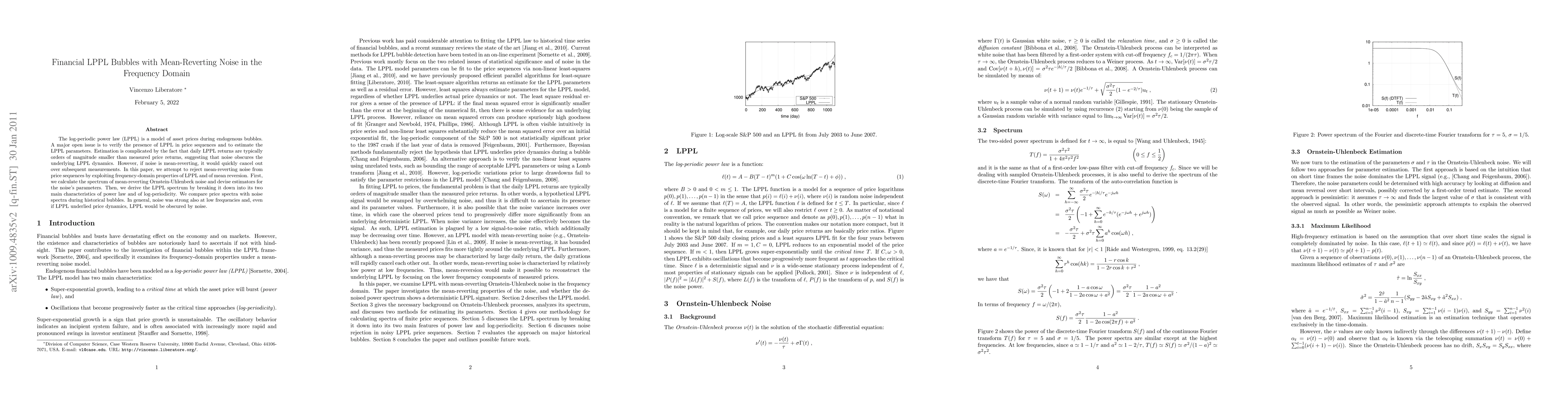 This paper investigates the presence of log-periodic power law (LPPL) bubbles in asset prices by estimating LPPL parameters amidst mean-reverting noise. The authors propose frequency-domain methods to isolate LPPL dynamics from noise, revealing that noise often obscures LPPL even at low frequencies.