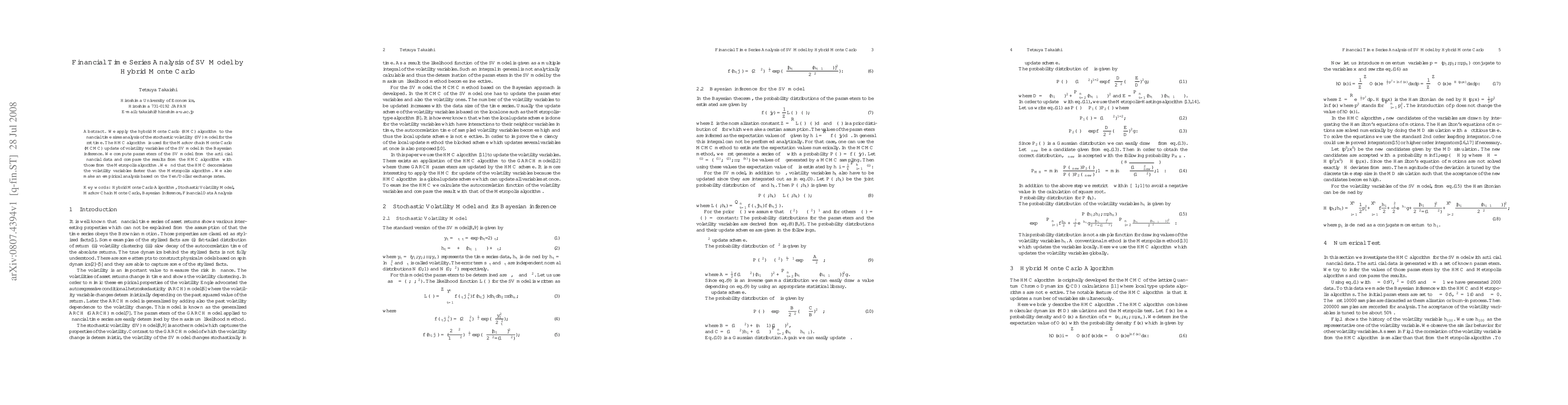 This paper introduces the hybrid Monte Carlo (HMC) algorithm for the first time in financial time series analysis of the stochastic volatility (SV) model, demonstrating its faster decorrelation of volatility variables compared to the Metropolis algorithm through both artificial data and empirical analysis of Yen/Dollar exchange rates.