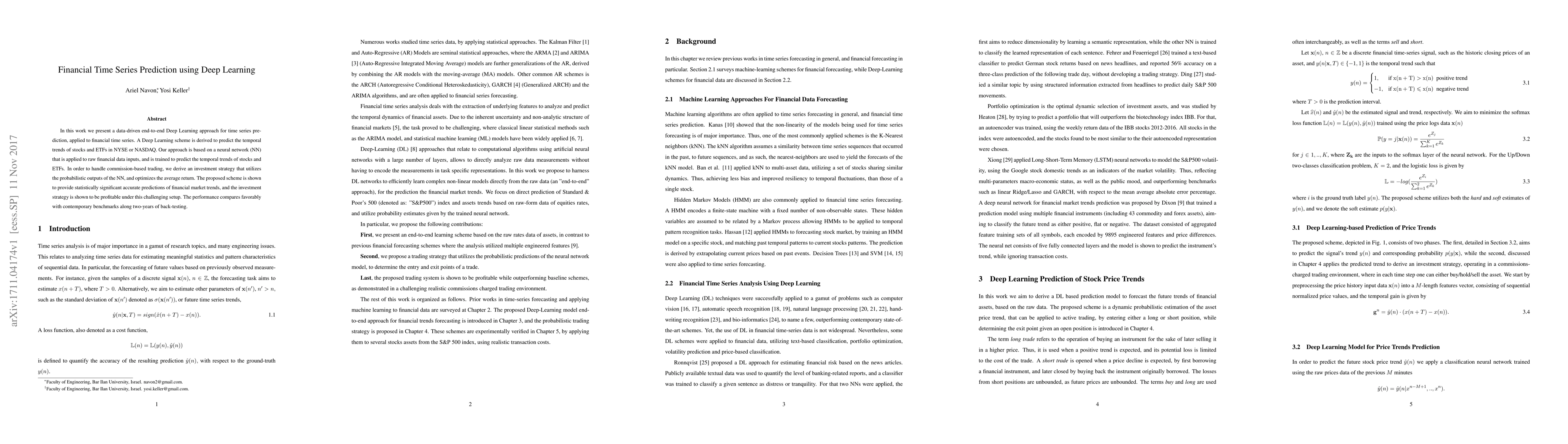 In this work we present a data-driven end-to-end Deep Learning approach for time series prediction, applied to financial time series. A Deep Learning scheme is derived to predict the temporal trends of stocks and ETFs in NYSE or NASDAQ. Our approach is based on a neural network (NN) that is applied to raw financial data inputs, and is trained to predict the temporal trends of stocks and ETFs. In order to handle commission-based trading, we derive an investment strategy that utilizes the probabilistic outputs of the NN, and optimizes the average return. The proposed scheme is shown to provide statistically significant accurate predictions of financial market trends, and the investment strategy is shown to be profitable under this challenging setup. The performance compares favorably with contemporary benchmarks along two-years of back-testing.
