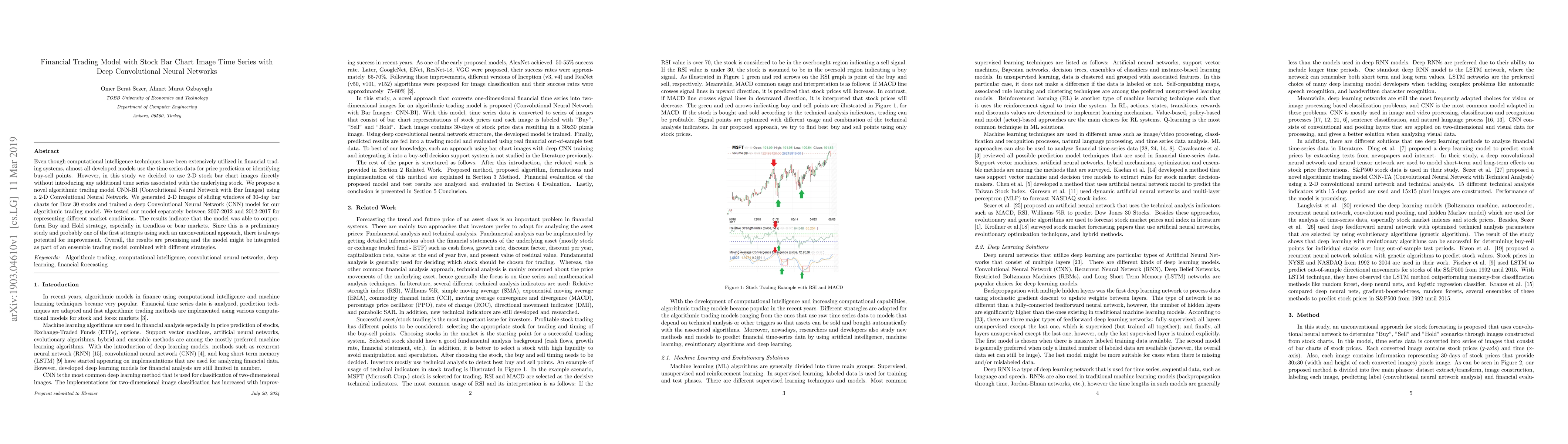 This study proposes a novel algorithmic trading model, CNN-BI, using deep Convolutional Neural Networks to analyze 2-D stock bar chart images directly, without time series data. The model outperformed the Buy and Hold strategy, especially in trendless or bear markets, indicating potential for integration into ensemble trading models.