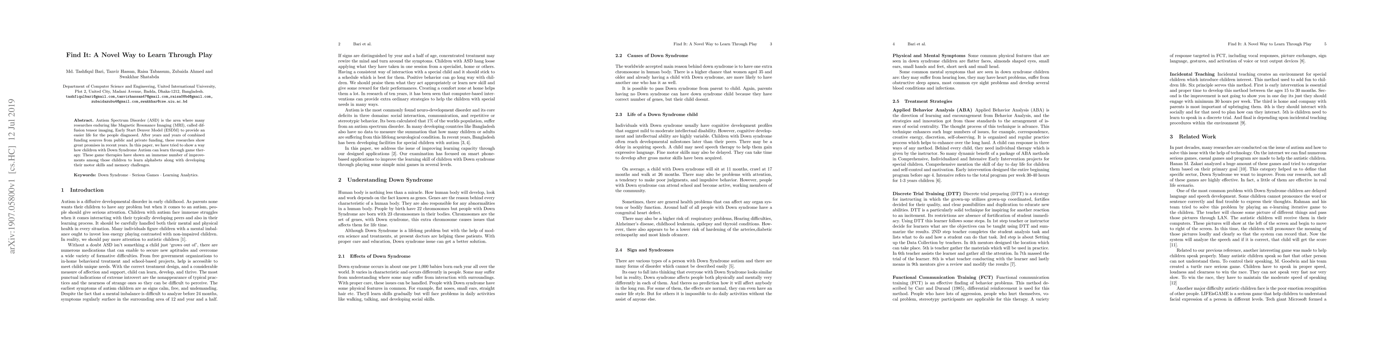 Autism Spectrum Disorder (ASD) is the area where many researches enduring like Magnetic Resonance Imaging (MRI), called diffusion tensor imaging, Early Start Denver Model (ESDM) to provide an easier life for the people diagnosed. After years and years of combined funding sources from public and private funding, these researches show great promises in recent years. In this paper, we have tried to show a way how children with Down Syndrome Autism can learn through game therapy. These game therapies have shown an immense number of improvements among those children to learn alphabets along with developing their motor skills and memory challenges.