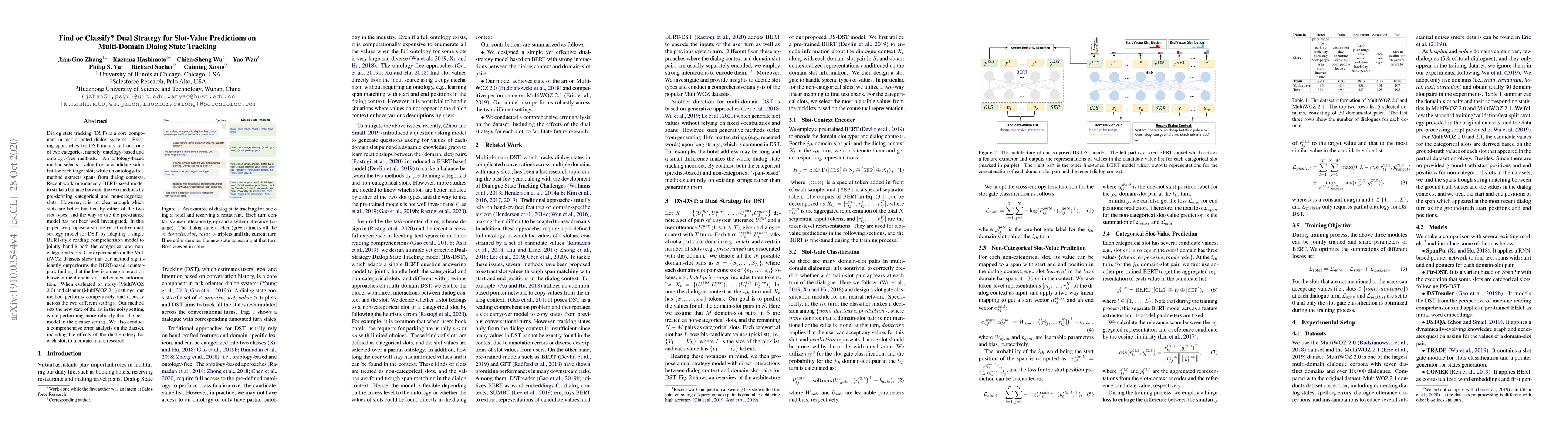 Dialog state tracking (DST) is a core component in task-oriented dialog systems. Existing approaches for DST mainly fall into one of two categories, namely, ontology-based and ontology-free methods. An ontology-based method selects a value from a candidate-value list for each target slot, while an ontology-free method extracts spans from dialog contexts. Recent work introduced a BERT-based model to strike a balance between the two methods by pre-defining categorical and non-categorical slots. However, it is not clear enough which slots are better handled by either of the two slot types, and the way to use the pre-trained model has not been well investigated. In this paper, we propose a simple yet effective dual-strategy model for DST, by adapting a single BERT-style reading comprehension model to jointly handle both the categorical and non-categorical slots. Our experiments on the MultiWOZ datasets show that our method significantly outperforms the BERT-based counterpart, finding that the key is a deep interaction between the domain-slot and context information. When evaluated on noisy (MultiWOZ 2.0) and cleaner (MultiWOZ 2.1) settings, our method performs competitively and robustly across the two different settings. Our method sets the new state of the art in the noisy setting, while performing more robustly than the best model in the cleaner setting. We also conduct a comprehensive error analysis on the dataset, including the effects of the dual strategy for each slot, to facilitate future research.