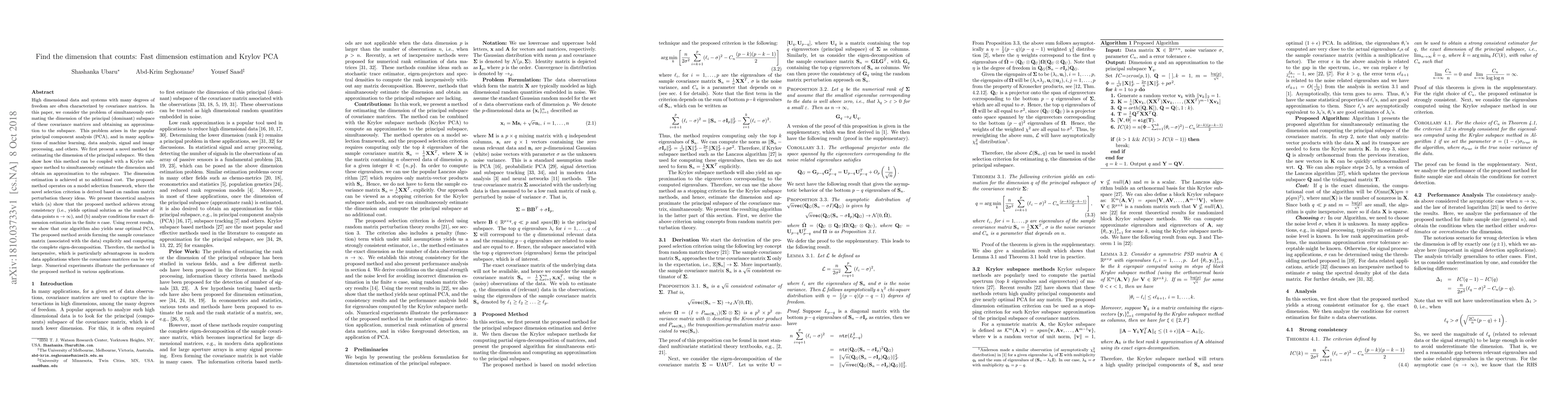This paper introduces a novel method for estimating the dimension of the principal subspace of covariance matrices, coupled with a Krylov subspace method to efficiently approximate the subspace. The method achieves optimal consistency and avoids costly eigen-decomposition, making it suitable for large-scale data applications.