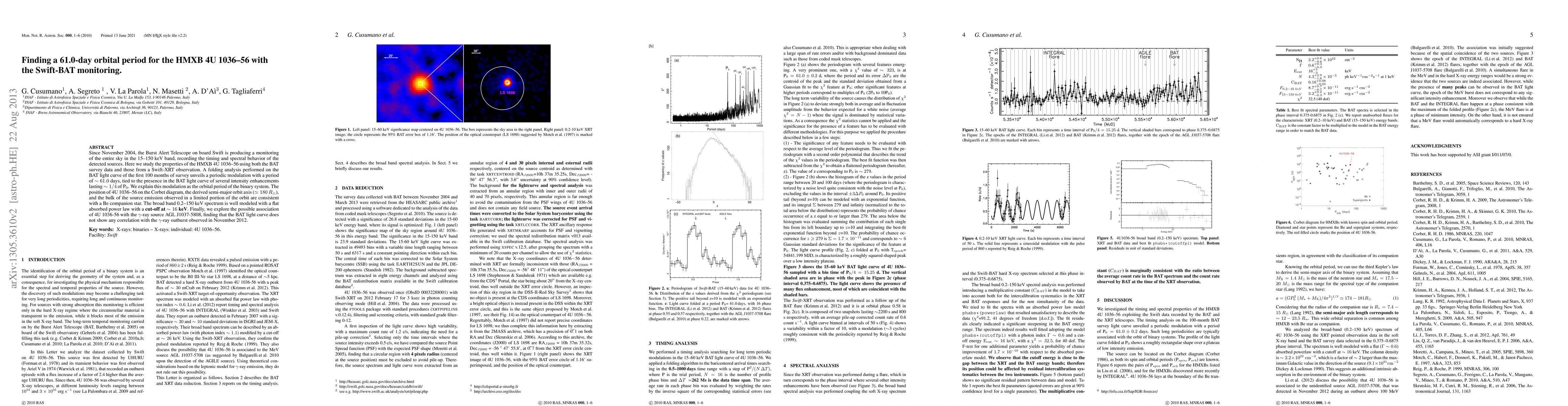 The HMXB 4U 1036-56 has been found to have a 61-day orbital period based on Swift-BAT monitoring data, with properties consistent with a Be companion star.