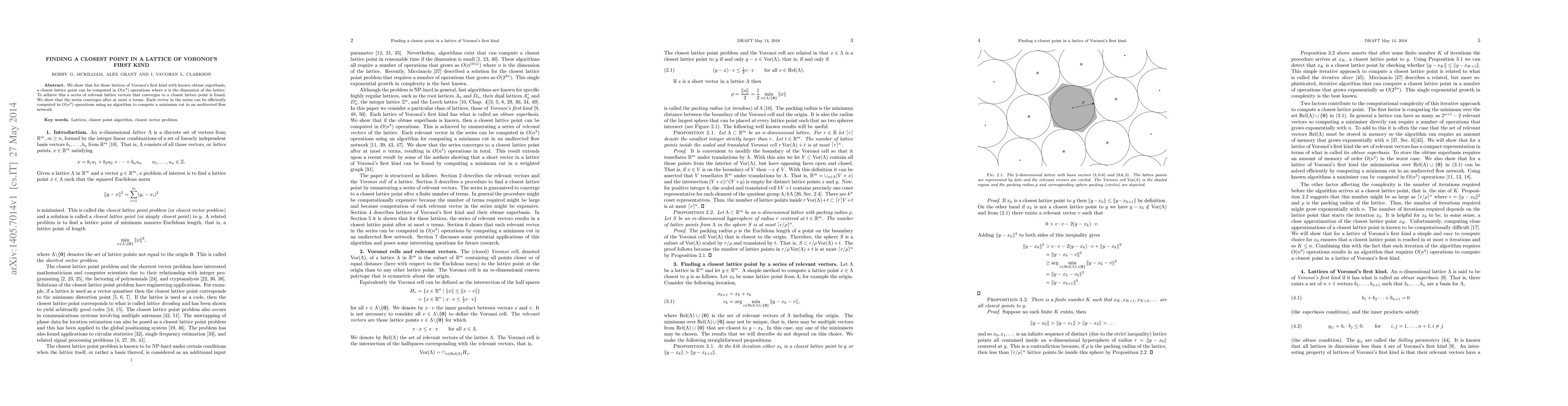 The research presents an algorithm to compute a closest lattice point in a lattice of Voronoi's first kind, given a known obtuse superbasis, requiring O(n^4) operations where n is the dimension of the lattice.