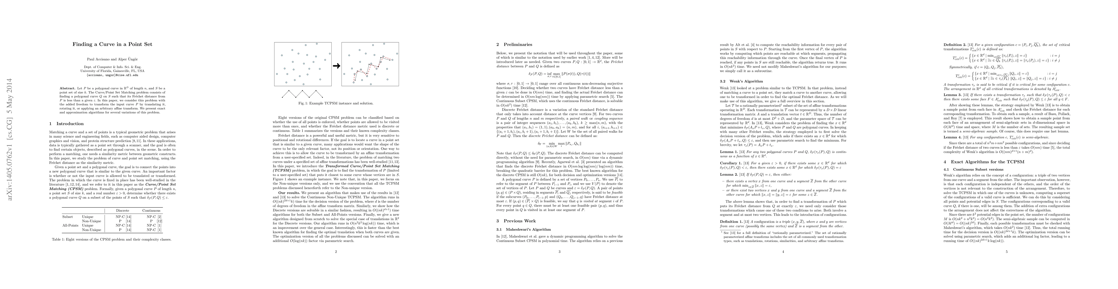 Let $P$ be a polygonal curve in $\mathbb{R}^D$ of length $n$, and $S$ be a point set of size $k$. The Curve/Point Set Matching problem consists of finding a polygonal curve $Q$ on $S$ such that its Fr\'echet distance from $P$ is less than a given $\varepsilon$. In this paper, we consider this problem with the added freedom to transform the input curve $P$ by translating it, rotating it, or applying an arbitrary affine transform. We present exact and approximation algorithms for several variations of this problem.