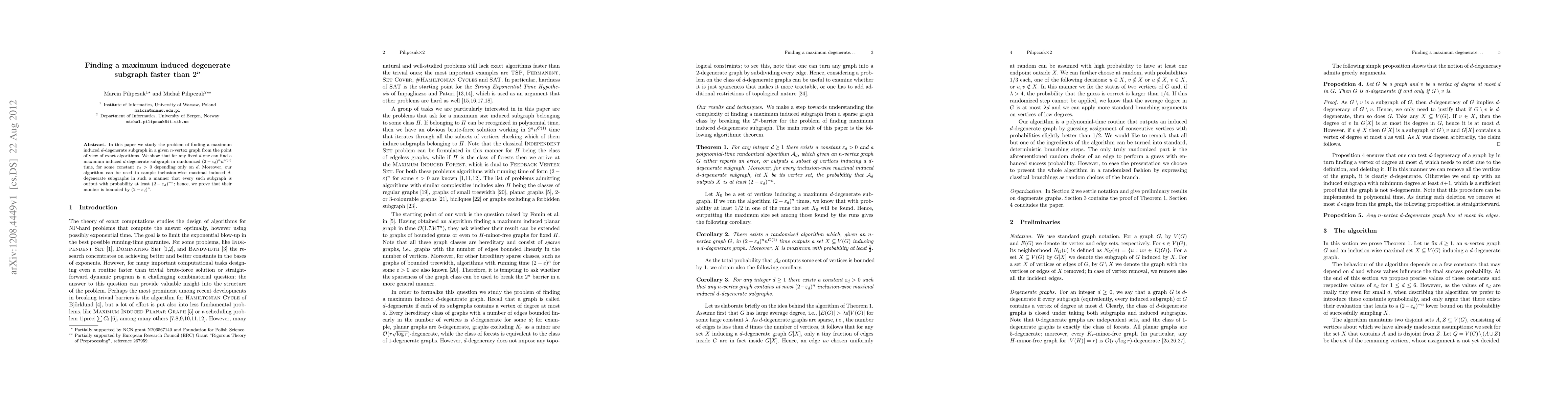 Researchers developed an algorithm to find a maximum induced d-degenerate subgraph in a graph faster than 2^n time, achieving randomized (2-eps_d)^n n^O(1) efficiency.
