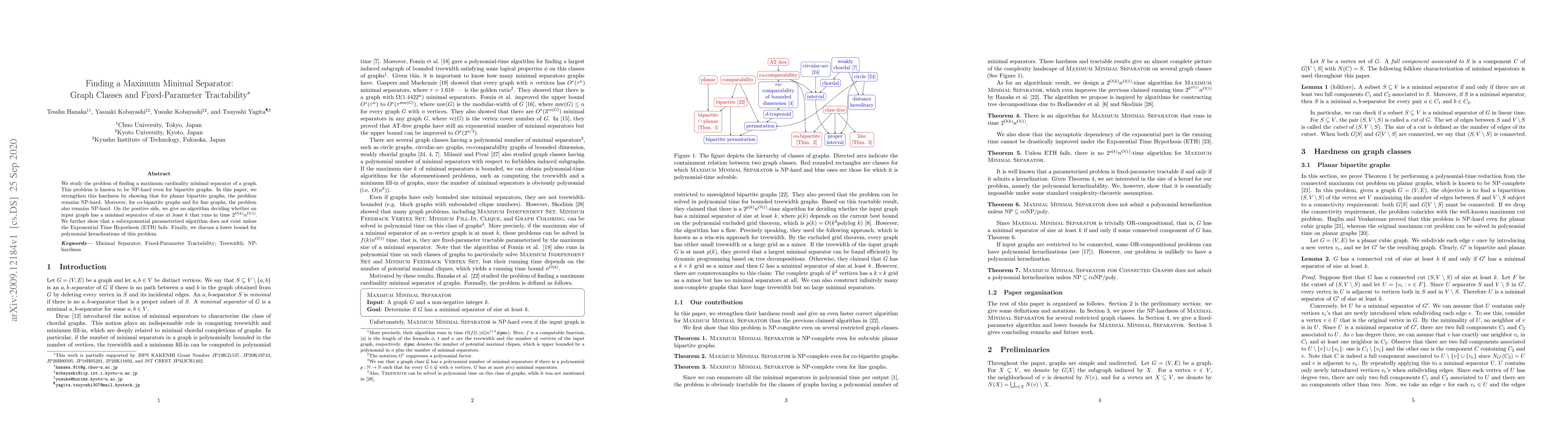 Researchers found that finding a maximum minimal separator in certain types of graphs is NP-hard, even for simpler cases like bipartite and planar graphs. However, they also created an algorithm to determine if a graph has a minimal separator of a certain size within a specific time complexity.