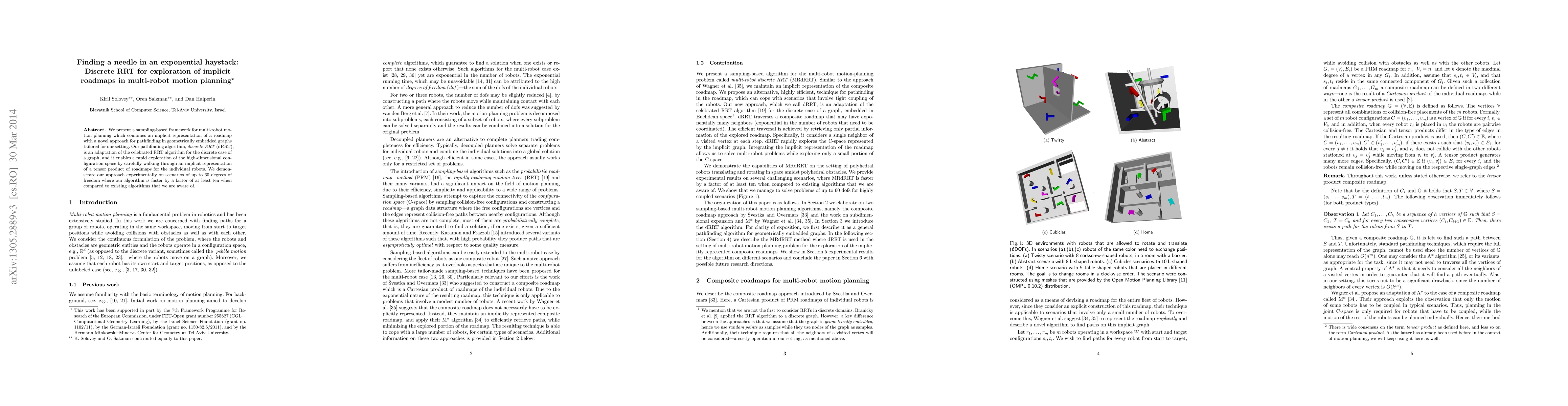 This paper introduces a novel discrete RRT (dRRT) algorithm for multi-robot motion planning, combining implicit roadmaps with a tailored pathfinding approach for high-dimensional configuration spaces. Experimental results show dRRT is at least ten times faster than existing algorithms in scenarios with up to 60 degrees of freedom.