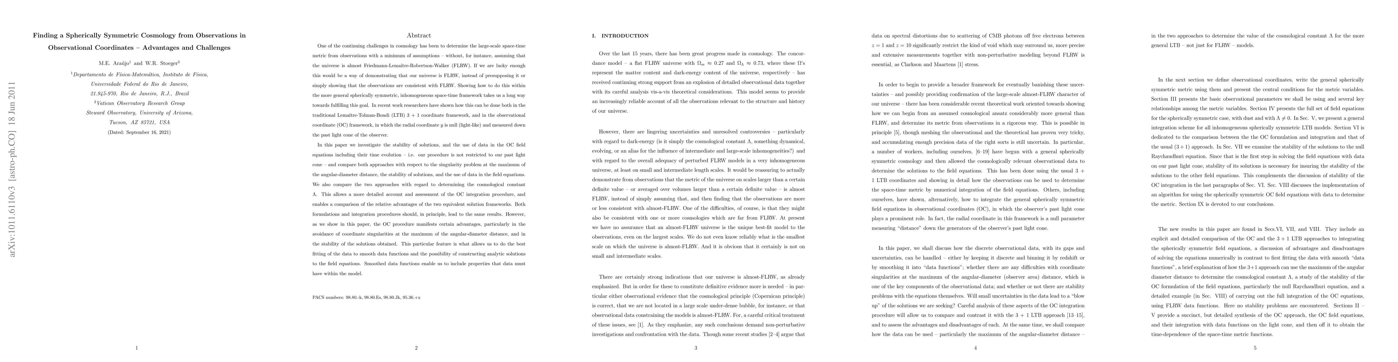 One of the continuing challenges in cosmology has been to determine the large-scale space-time metric from observations with a minimum of assumptions -- without, for instance, assuming that the universe is almost Friedmann-Lema\^{i}tre-Robertson-Walker (FLRW). If we are lucky enough this would be a way of demonstrating that our universe is FLRW, instead of presupposing it or simply showing that the observations are consistent with FLRW. Showing how to do this within the more general spherically symmetric, inhomogeneous space-time framework takes us a long way towards fulfilling this goal. In recent work researchers have shown how this can be done both in the traditional Lema\^{i}tre-Tolman-Bondi (LTB) 3 + 1 coordinate framework, and in the observational coordinate (OC) framework. In this paper we investigate the stability of solutions, and the use of data in the OC field equations including their time evolution and compare both approaches with respect to the singularity problem at the maximum of the angular-diameter distance, the stability of solutions, and the use of data in the field equations. This allows a more detailed account and assessment of the OC integration procedure, and enables a comparison of the relative advantages of the two equivalent solution frameworks. Both formulations and integration procedures should, in principle, lead to the same results. However, as we show in this paper, the OC procedure manifests certain advantages, particularly in the avoidance of coordinate singularities at the maximum of the angular-diameter distance, and in the stability of the solutions obtained. This particular feature is what allows us to do the best fitting of the data to smooth data functions and the possibility of constructing analytic solutions to the field equations.