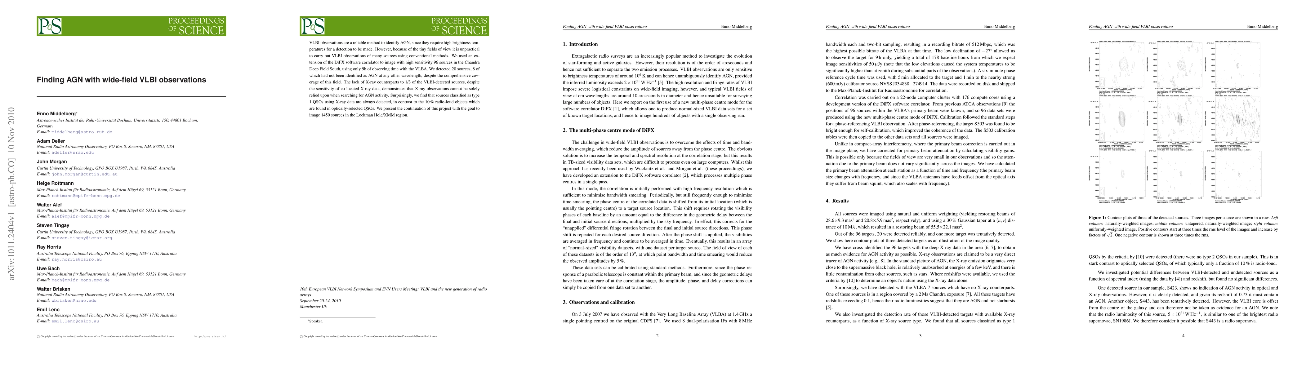 VLBI observations are a reliable method to identify AGN, since they require high brightness temperatures for a detection to be made. However, because of the tiny fields of view it is unpractical to carry out VLBI observations of many sources using conventional methods. We used an extension of the DiFX software correlator to image with high sensitivity 96 sources in the Chandra Deep Field South, using only 9h of observing time with the VLBA. We detected 20 sources, 8 of which had not been identified as AGN at any other wavelength, despite the comprehensive coverage of this field. The lack of X-ray counterparts to 1/3 of the VLBI-detected sources, despite the sensitivity of co-located X-ray data, demonstrates that X-ray observations cannot be solely relied upon when searching for AGN activity. Surprisingly, we find that sources classified as type 1 QSOs using X-ray data are always detected, in contrast to the 10% radio-loud objects which are found in optically-selected QSOs. We present the continuation of this project with the goal to image 1450 sources in the Lockman Hole/XMM region.