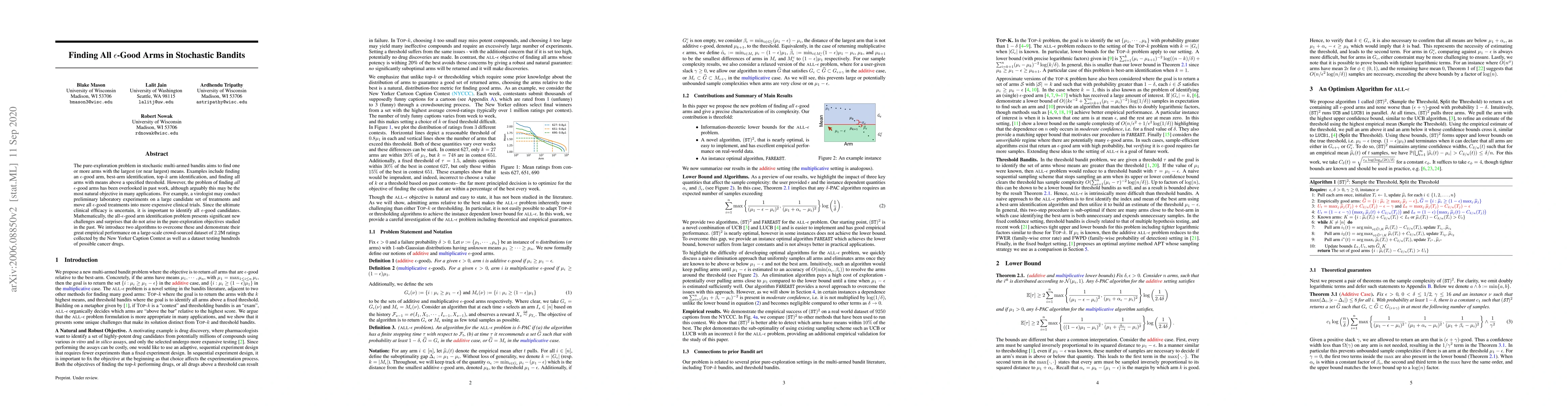 This paper addresses the overlooked problem of identifying all u211d-good arms in stochastic bandits, which is crucial in applications like virology and drug testing. Two novel algorithms are introduced to tackle the unique challenges of this problem, demonstrating superior performance on large-scale datasets, including New Yorker Caption Contest ratings and cancer drug trials.