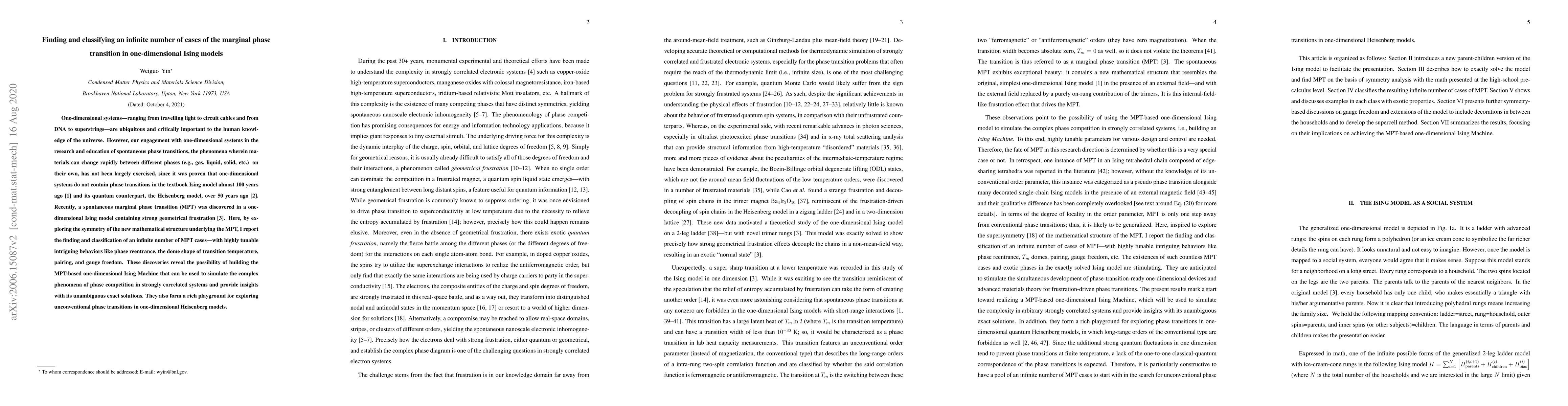 This paper discovers and classifies an infinite number of marginal phase transitions in one-dimensional Ising models, revealing intriguing behaviors such as phase reentrance and gauge freedom. These findings open the possibility of constructing an Ising Machine to simulate complex phase competition phenomena in strongly correlated systems.