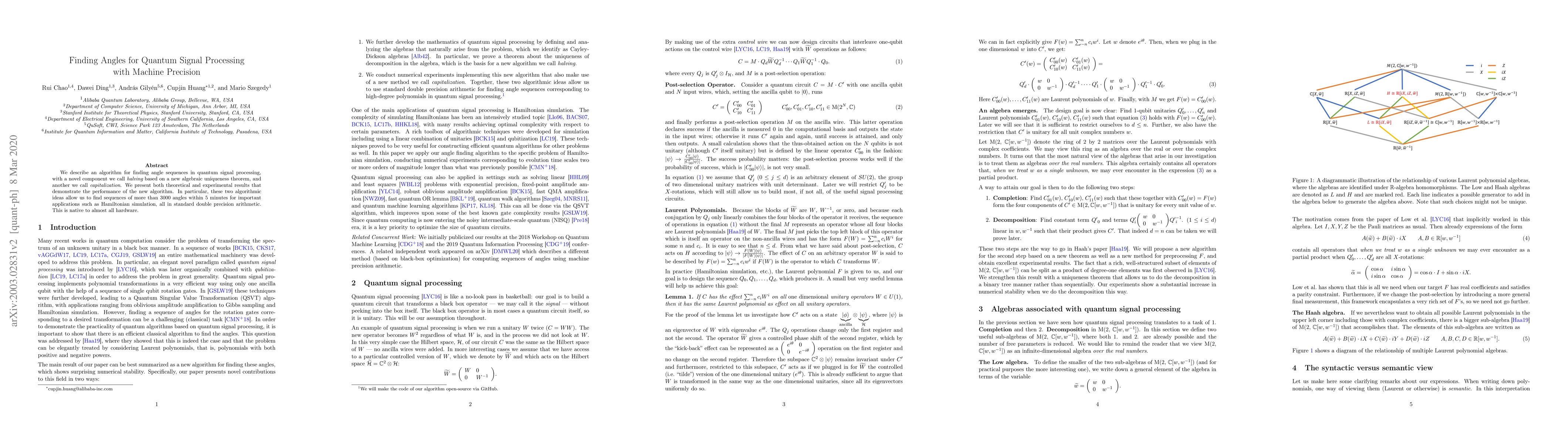 We describe an algorithm for finding angle sequences in quantum signal processing, with a novel component we call halving based on a new algebraic uniqueness theorem, and another we call capitalization. We present both theoretical and experimental results that demonstrate the performance of the new algorithm. In particular, these two algorithmic ideas allow us to find sequences of more than 3000 angles within 5 minutes for important applications such as Hamiltonian simulation, all in standard double precision arithmetic. This is native to almost all hardware.