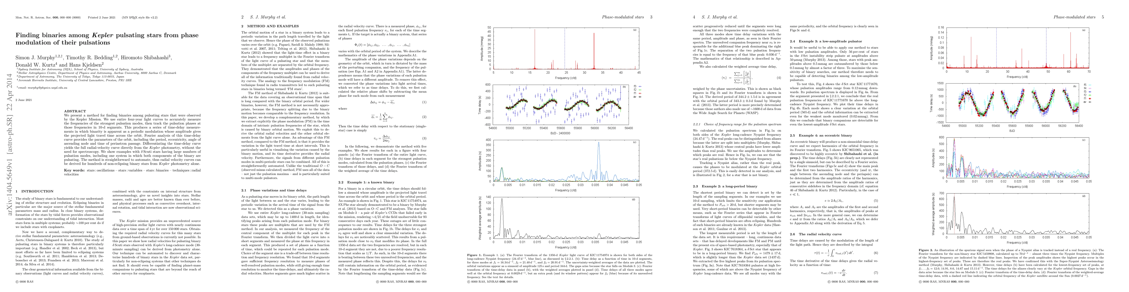 This paper presents a method to identify and characterize binary systems among pulsating stars observed by Kepler, using phase modulation of their pulsations. The technique extracts orbital parameters directly from light curves, eliminating the need for spectroscopy and enabling the automation of radial velocity curve derivation for numerous non-eclipsing binaries.