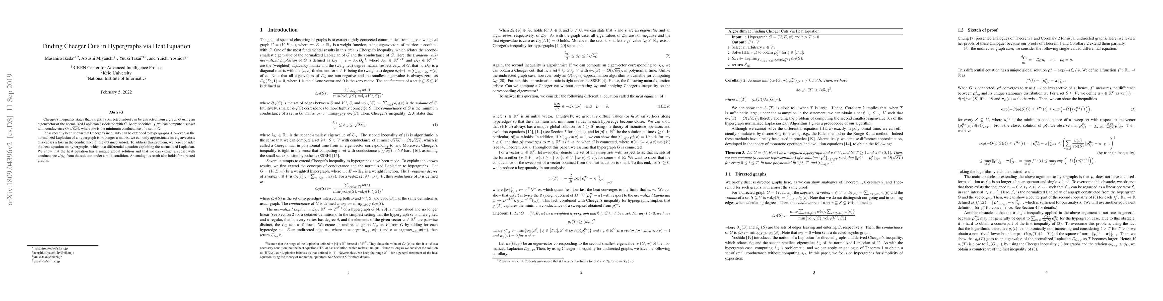A new method using the heat equation is proposed to find optimal subsets in hypergraphs, improving upon previous approximations of Cheeger's inequality.