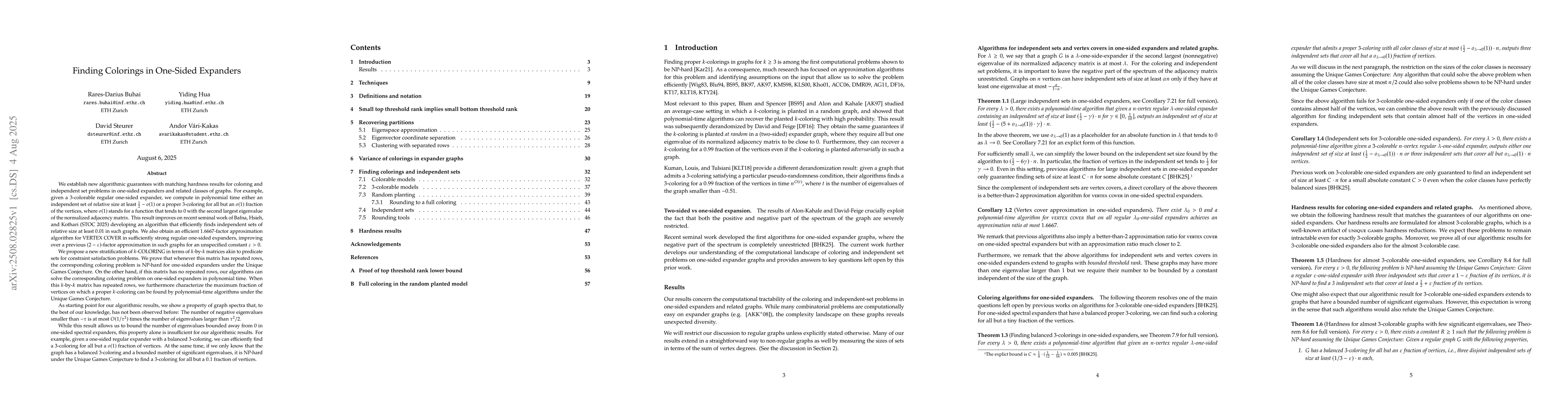 We establish new algorithmic guarantees with matching hardness results for coloring and independent set problems in one-sided expanders and related classes of graphs. For example, given a $3$-colorable regular one-sided expander, we compute in polynomial time either an independent set of relative size at least $1/2-o(1)$ or a proper $3$-coloring for all but an $o(1)$ fraction of the vertices, where $o(1)$ stands for a function that tends to $0$ with the second largest eigenvalue of the normalized adjacency matrix. This result improves on recent seminal work of Bafna, Hsieh, and Kothari (STOC 2025) developing an algorithm that efficiently finds independent sets of relative size at least $0.01$ in such graphs. We also obtain an efficient $1.6667$-factor approximation algorithm for VERTEX COVER in sufficiently strong regular one-sided expanders, improving over a previous $(2-\epsilon)$-factor approximation in such graphs for an unspecified constant $\epsilon>0$. We propose a new stratification of $k$-COLORING in terms of $k$-by-$k$ matrices akin to predicate sets for constraint satisfaction problems. We prove that whenever this matrix has repeated rows, the corresponding coloring problem is NP-hard for one-sided expanders under the Unique Games Conjecture. On the other hand, if this matrix has no repeated rows, our algorithms can solve the corresponding coloring problem on one-sided expanders in polynomial time. As starting point for our algorithmic results, we show a property of graph spectra that, to the best of our knowledge, has not been observed before: The number of negative eigenvalues smaller than $-\tau$ is at most $O(1/\tau^{2})$ times the number of eigenvalues larger than $\tau^{2}/2$. While this result allows us to bound the number of eigenvalues bounded away from $0$ in one-sided spectral expanders, this property alone is insufficient for our algorithmic results.